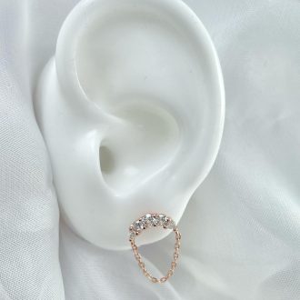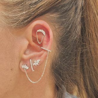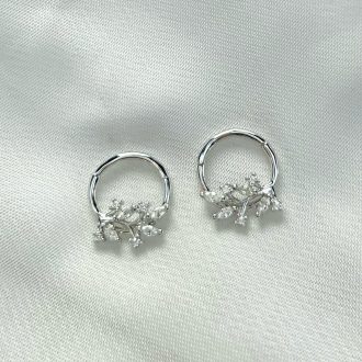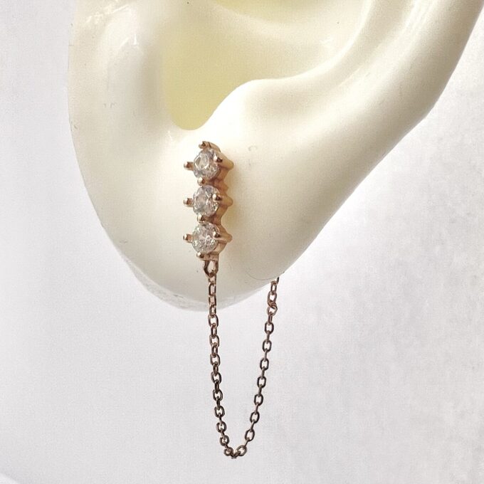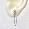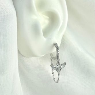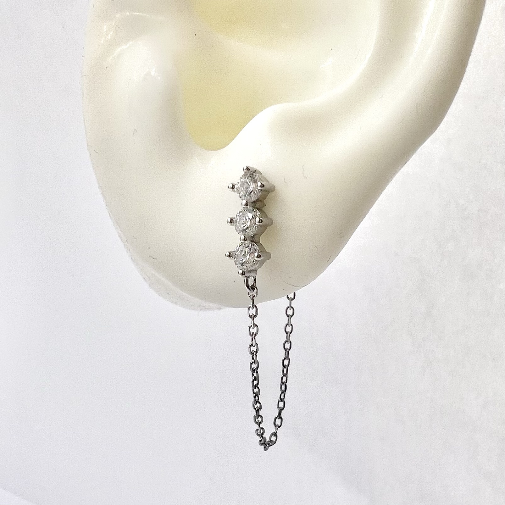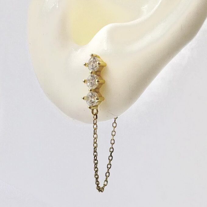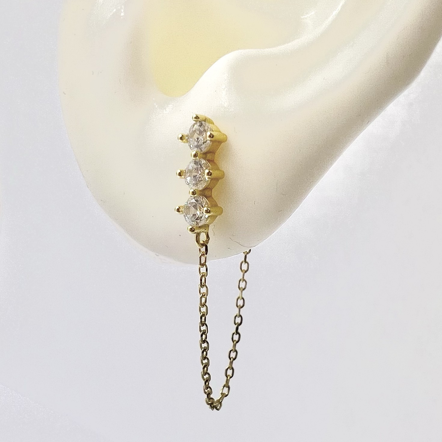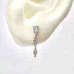 עגיל צמוד ונופל עם פלטת פס משובץ שלושה אבני זרקון עגולות מכסף אמיתי 925