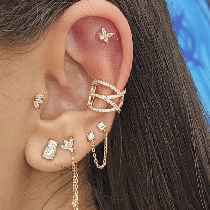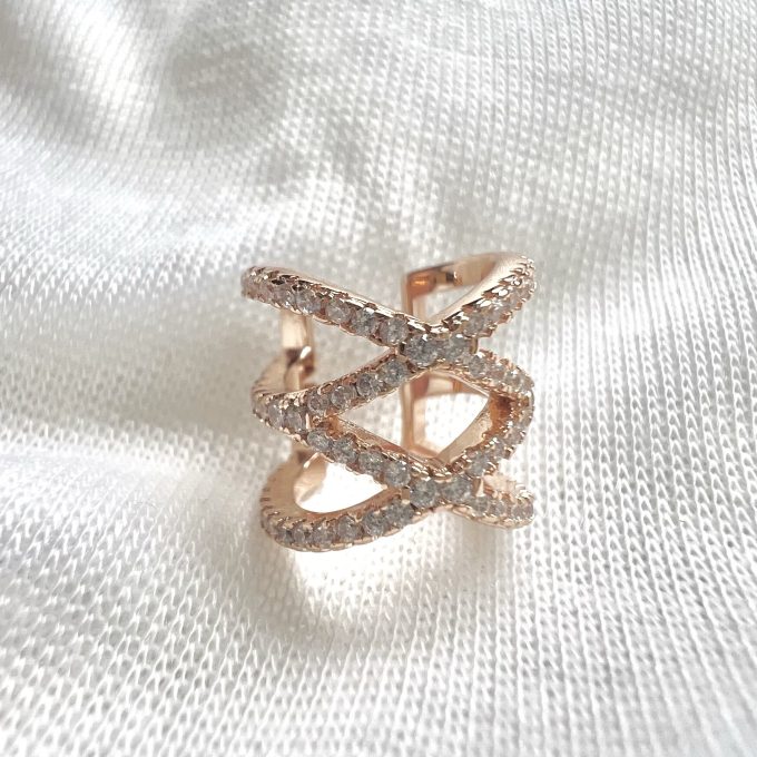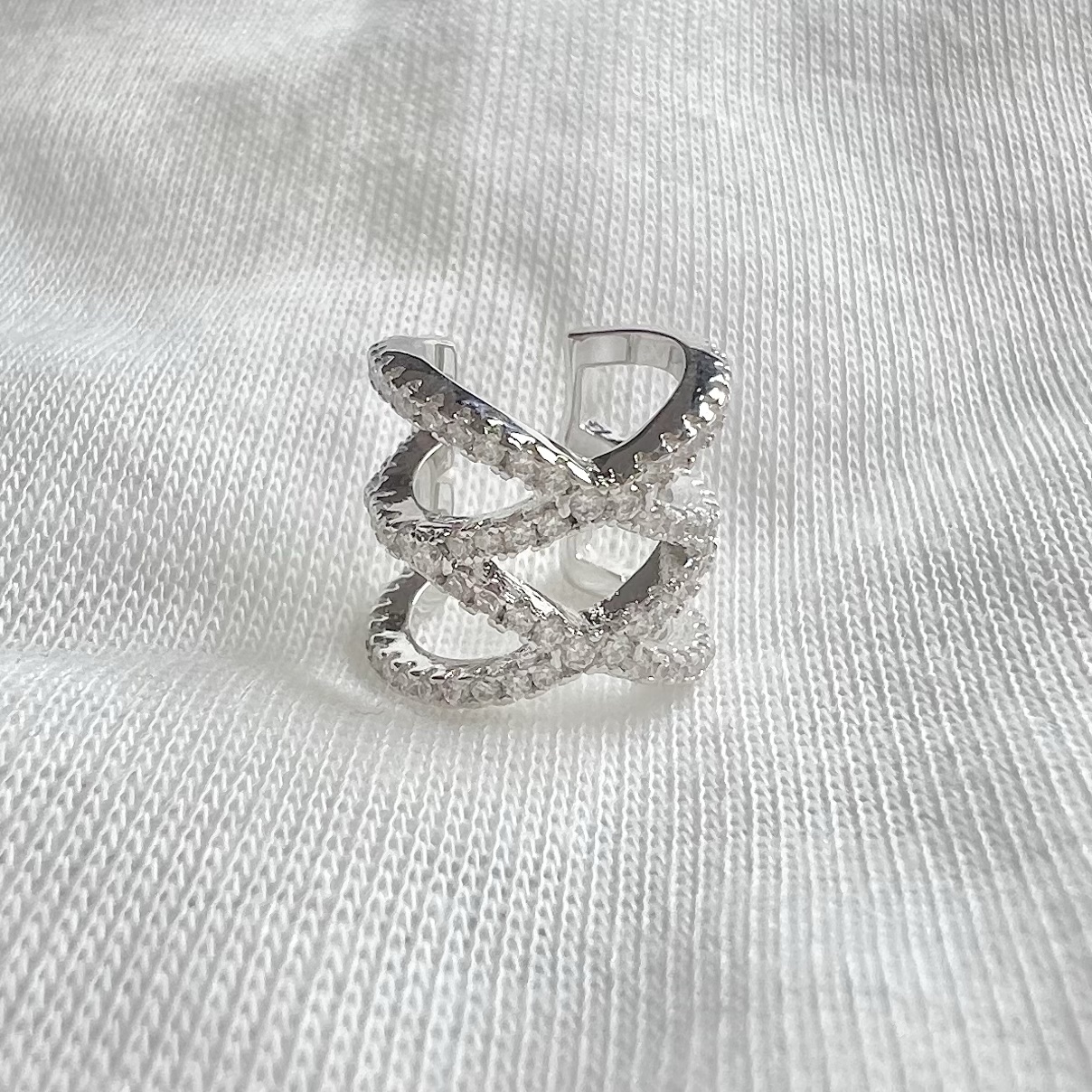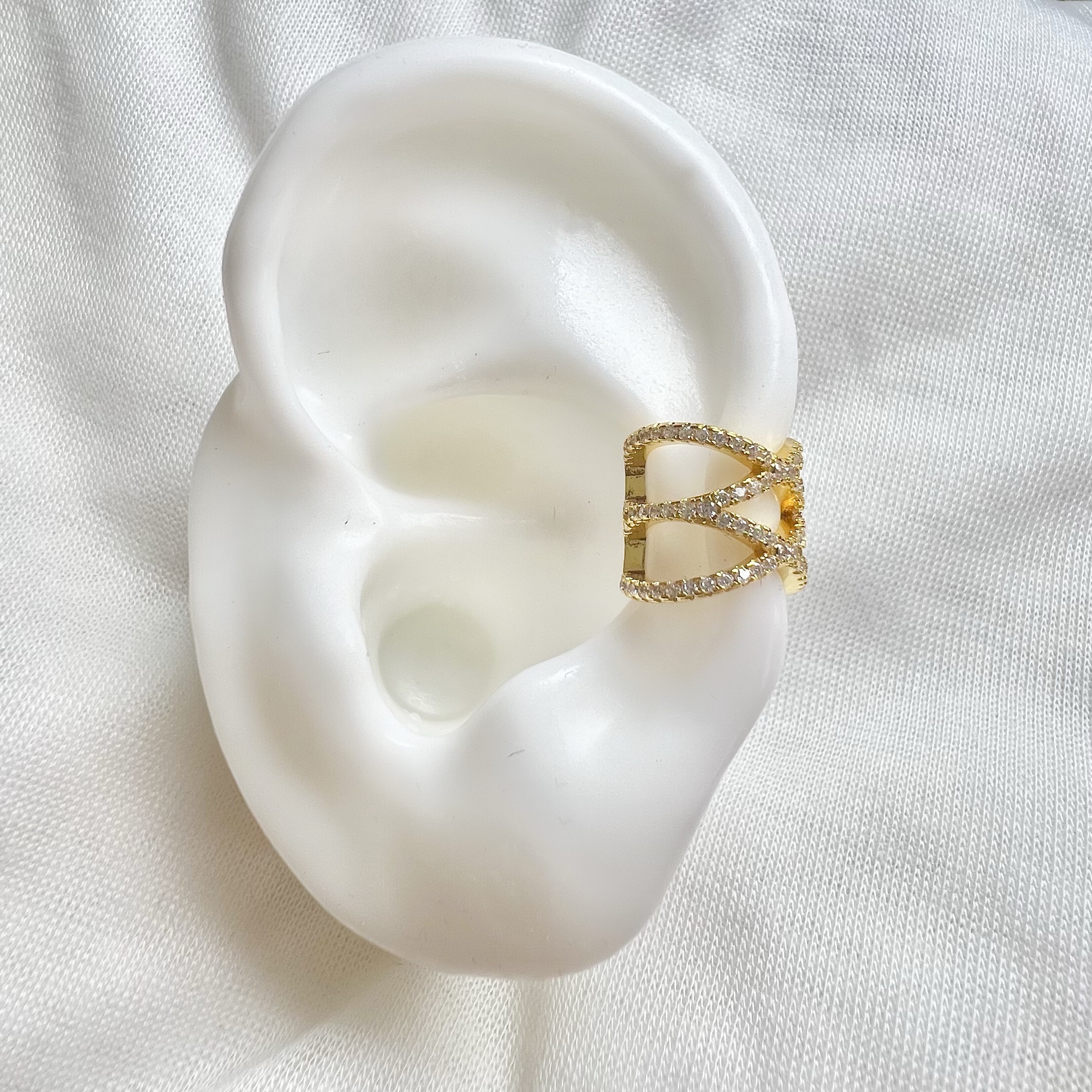 עגיל הליקס ללא חור בצורת איקסים מחוברים ומשובצים אבני זרקון מרודיום איכותי