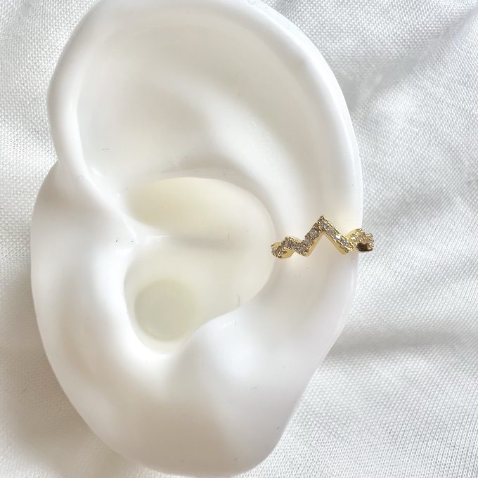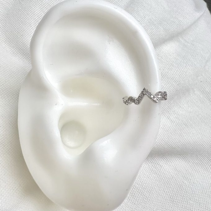 עגיל הליקס ללא צורך בחור בצורת ברק משובץ אבני זרקון מרודיום איכותי