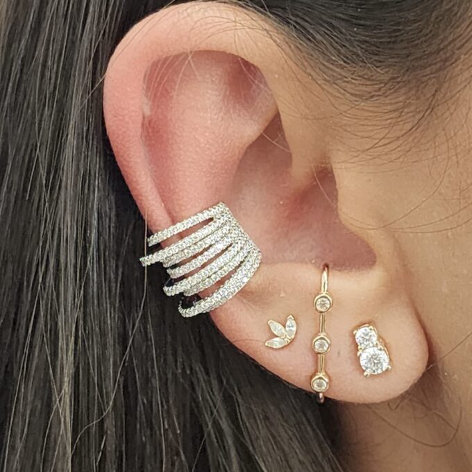 עגיל הליקס שורות מדורגות ומשובצות אבני זרקון ללא צורך בחור מרודיום איכותי