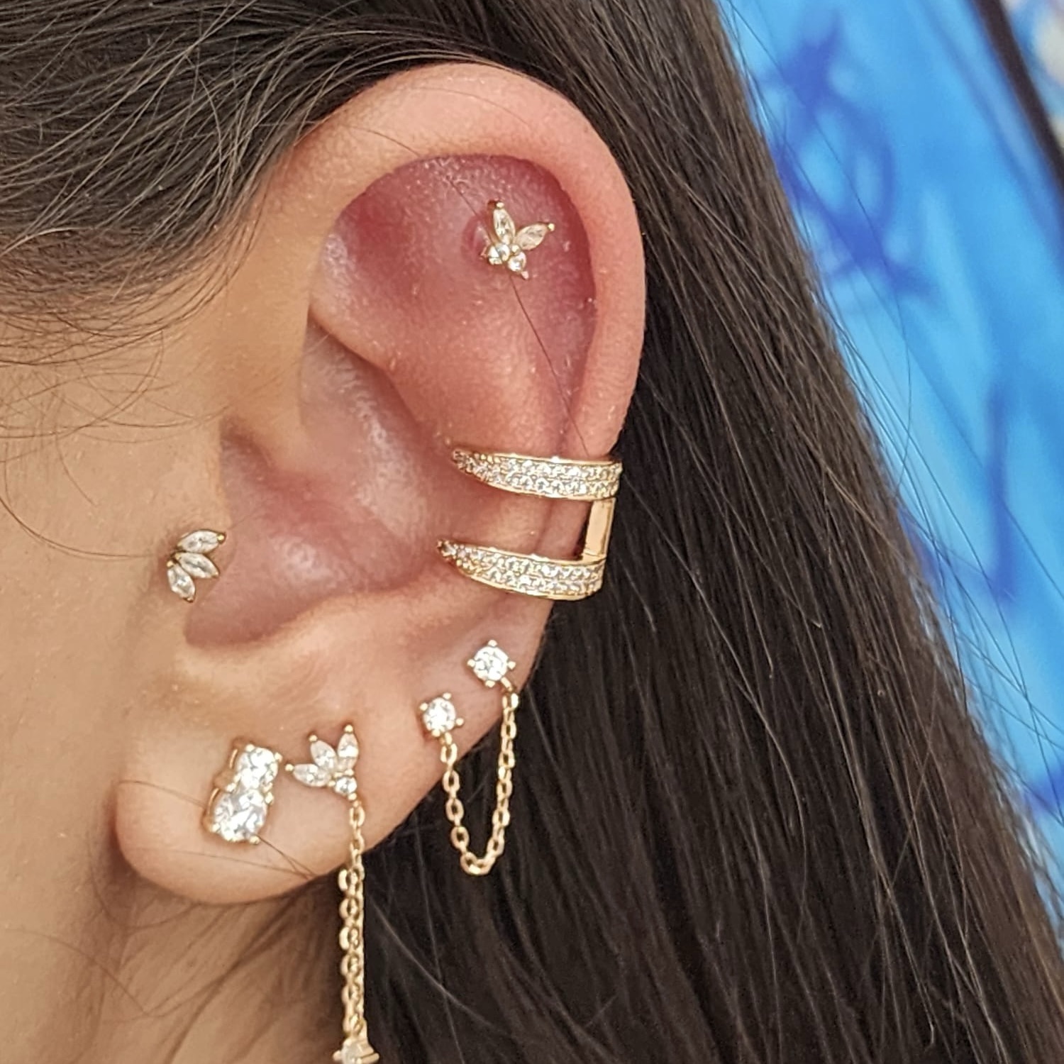 עגיל הליקס ללא חור משובץ אבני זרקון מרודיום איכותי