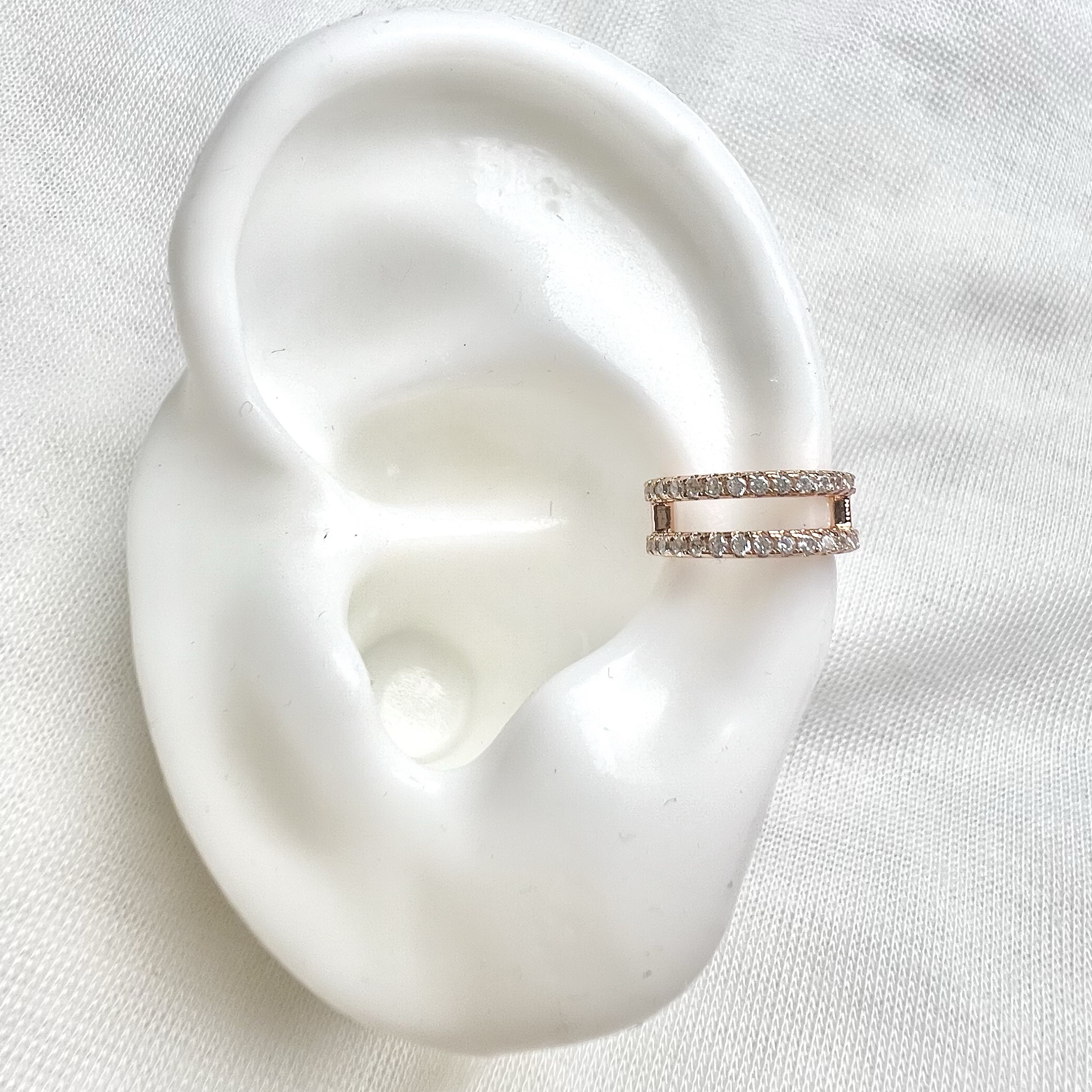 עגיל הליקס ללא צורך בחור שתי שורות שמתחברות ומשובצות אבני זרקון מרודיום איכותי