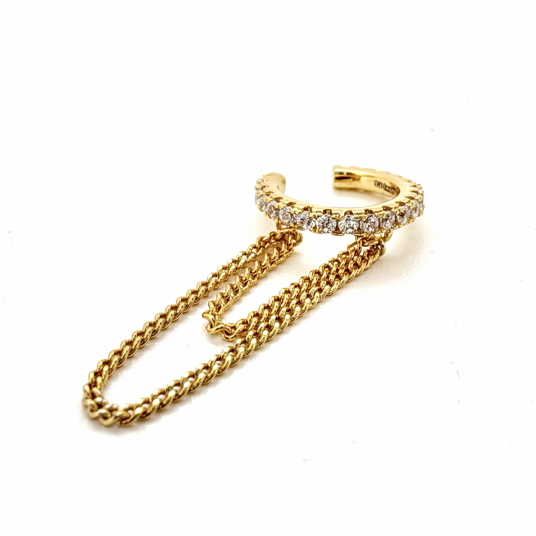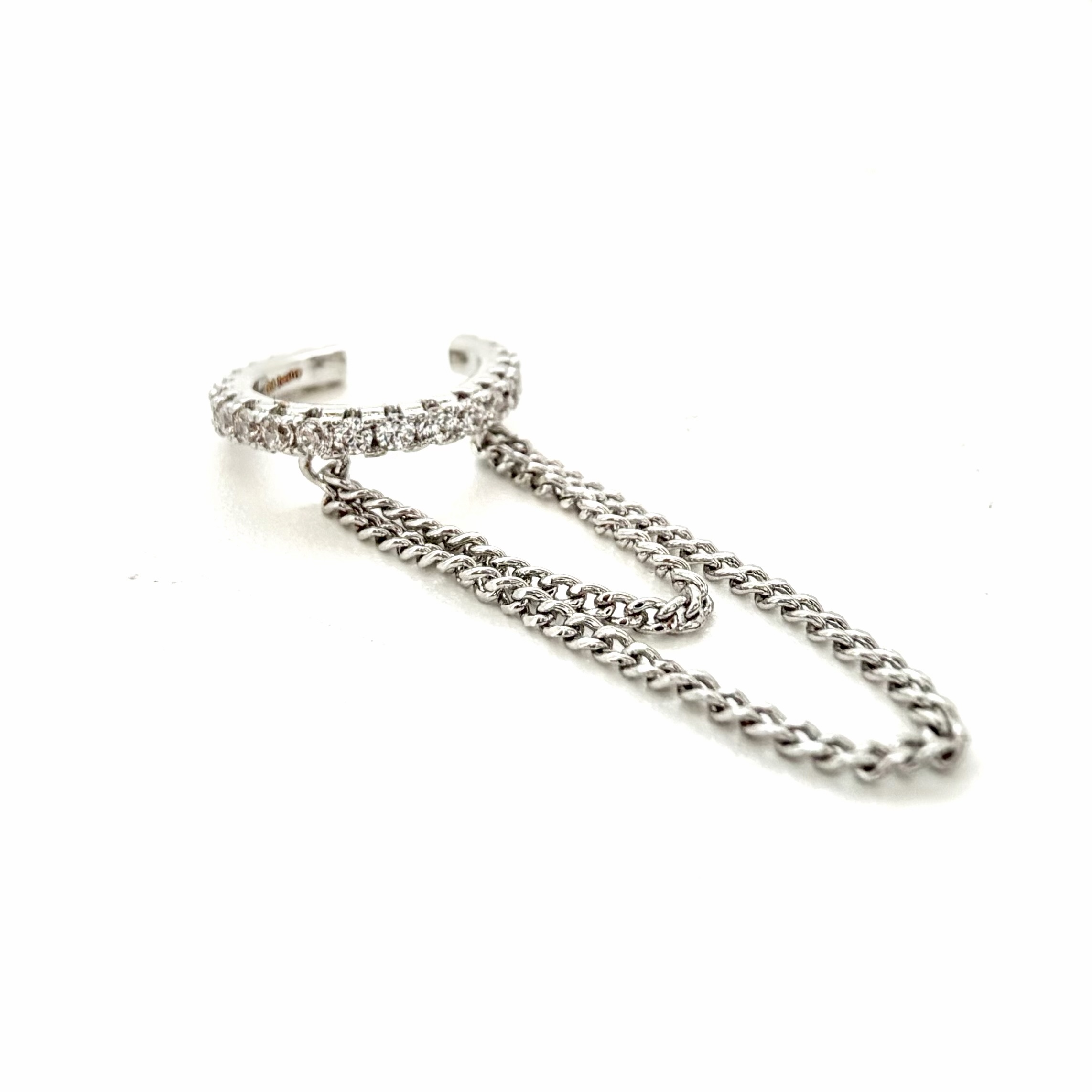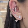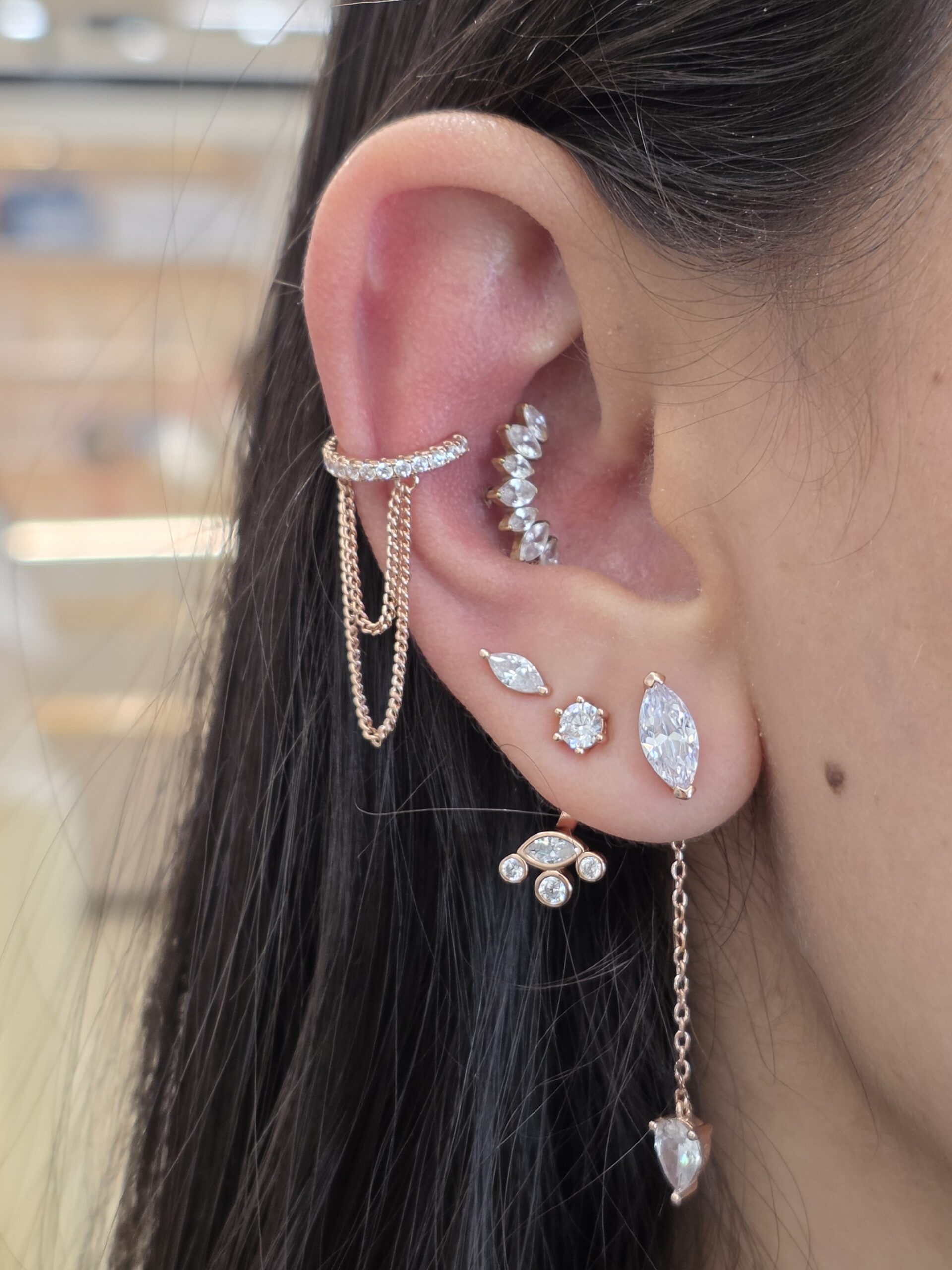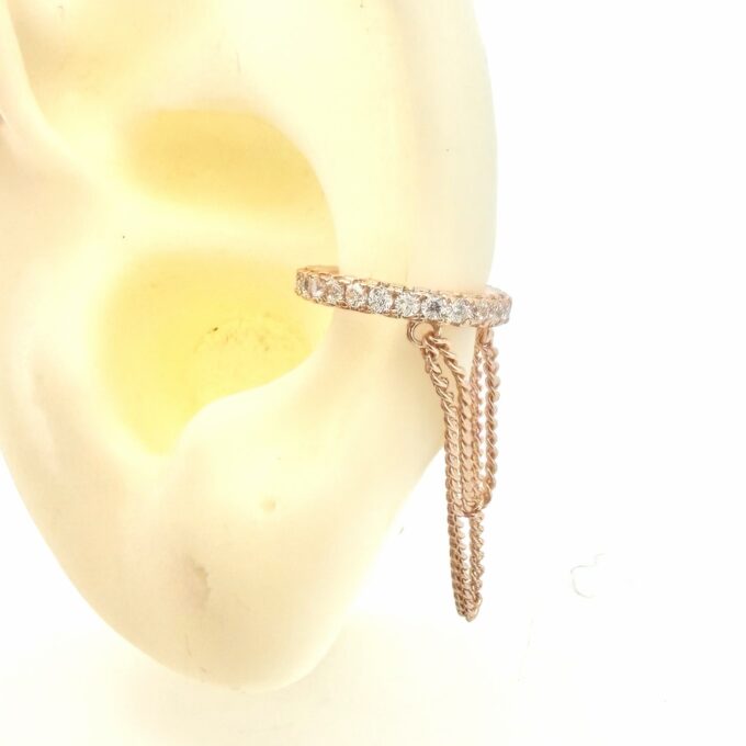 עגיל הליקס ללא חור משובצת אבני זרקון עם שתי שרשראות גורמט נופלות