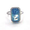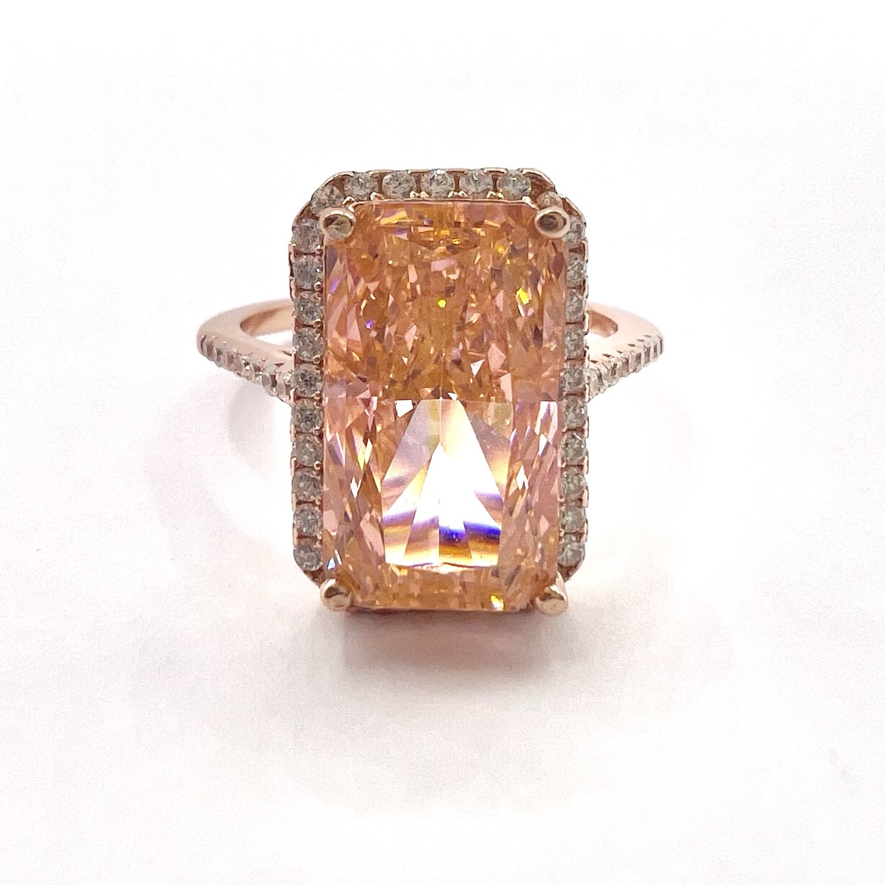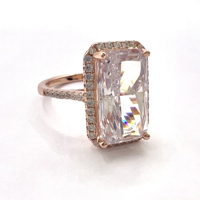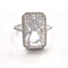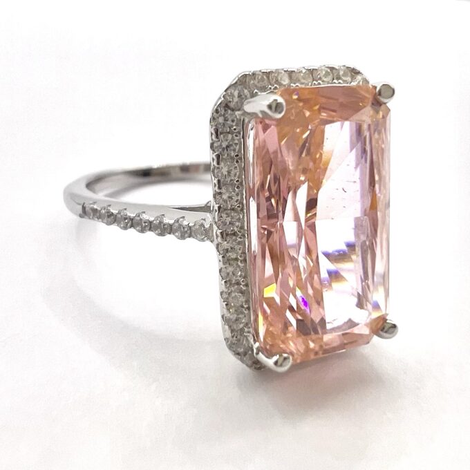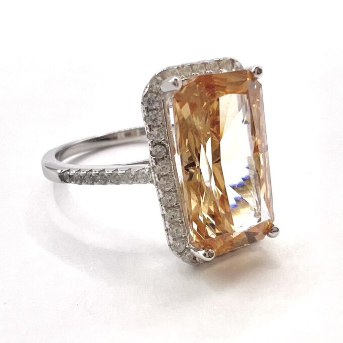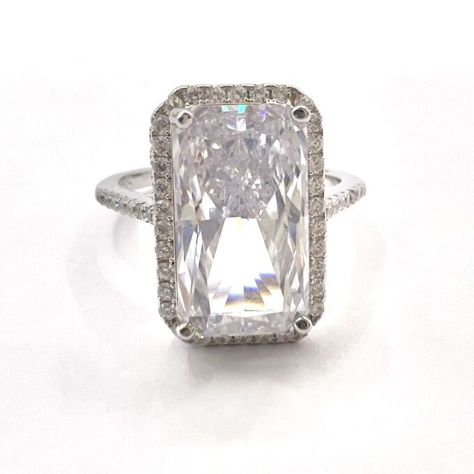 טבעת משובצת אבן זרקון גדולה מלבנית ומשובצת מסביבה אבני זרקון מכסף אמיתי 925