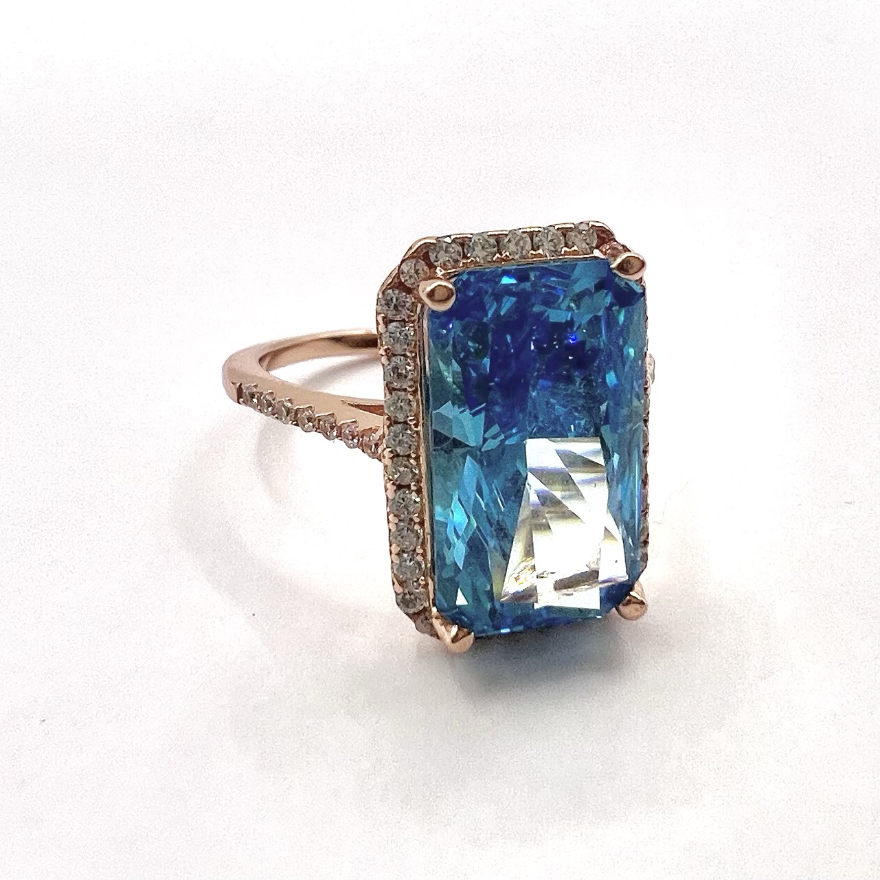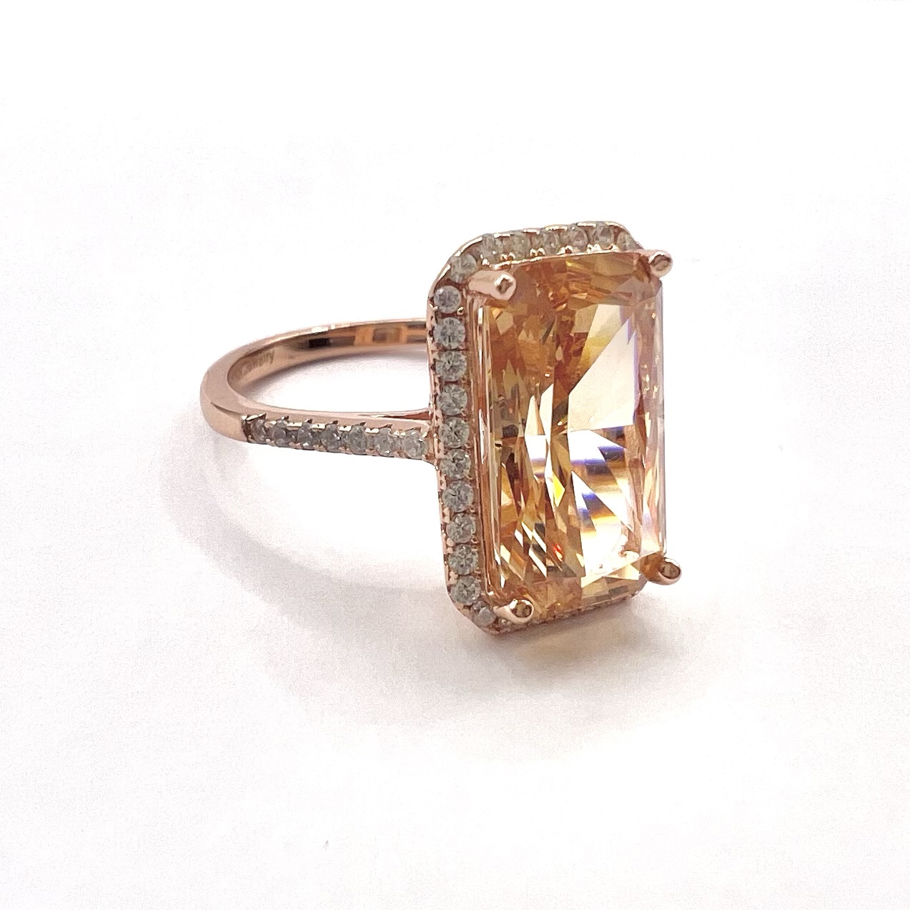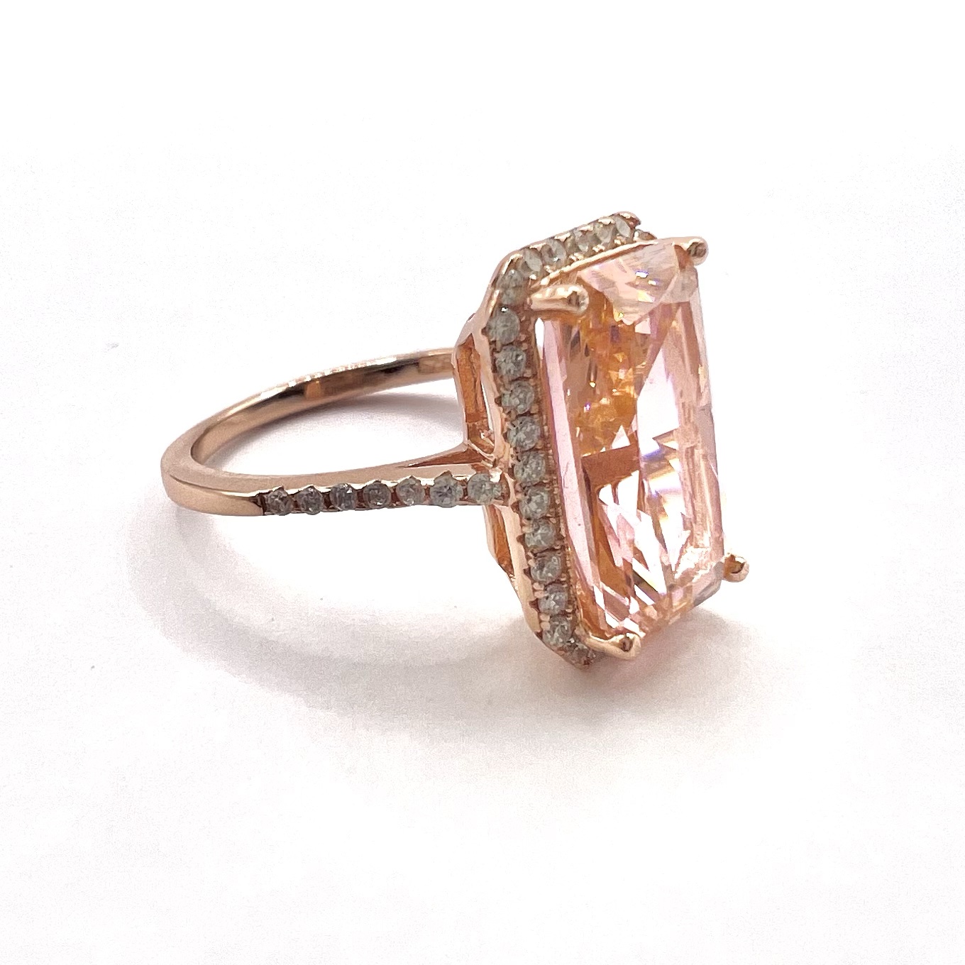 טבעת משובצת אבן זרקון גדולה מלבנית ומשובצת מסביבה אבני זרקון מכסף אמיתי 925