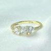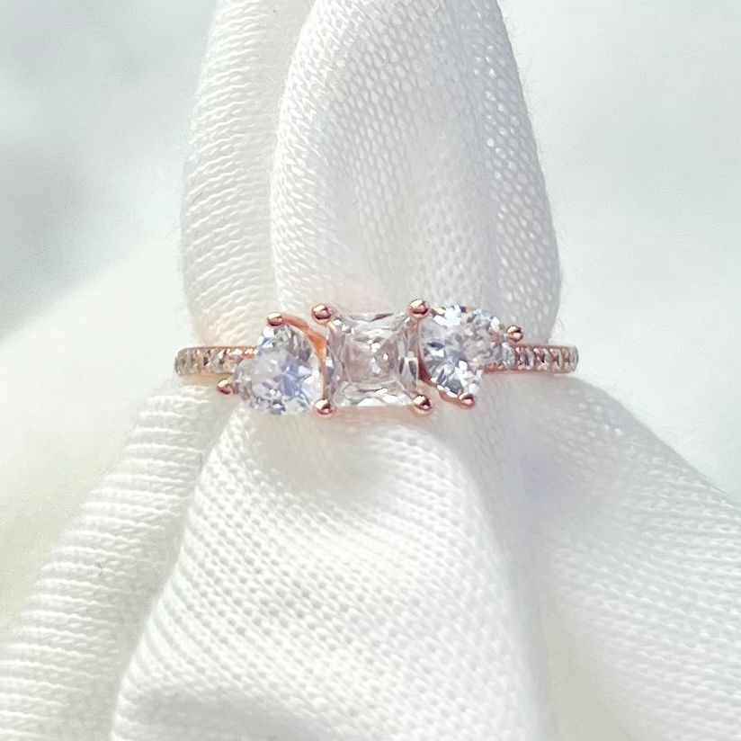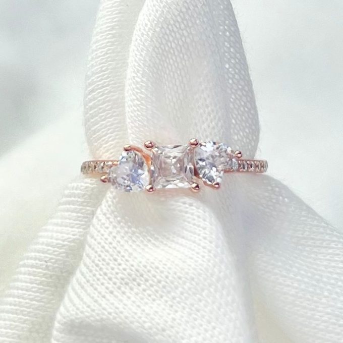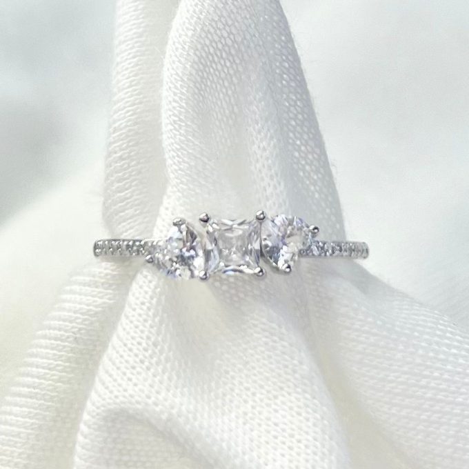 טבעת משובצת עם שילוב של שלושה אבנים באמצע מכסף אמיתי 925