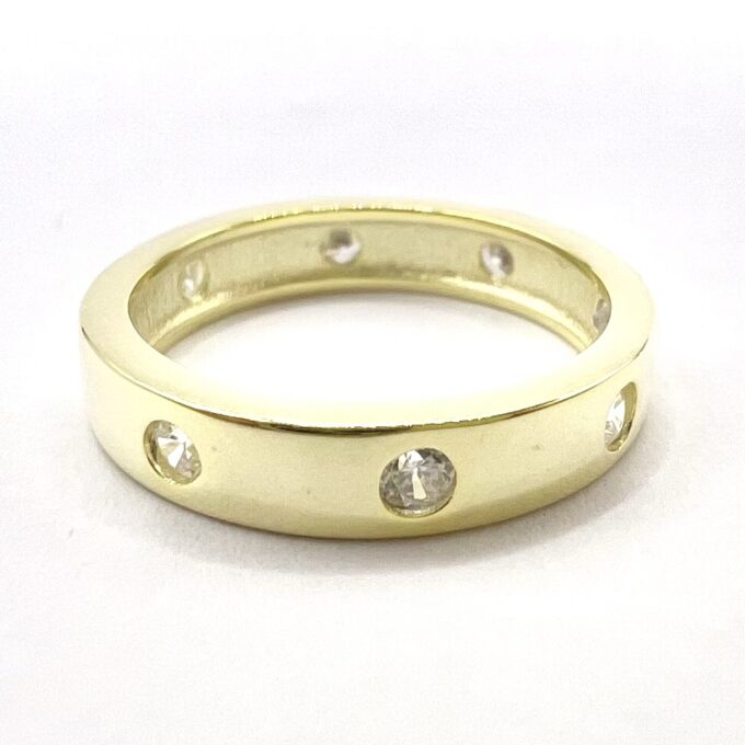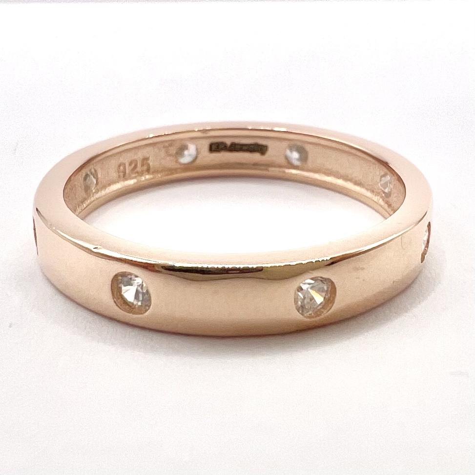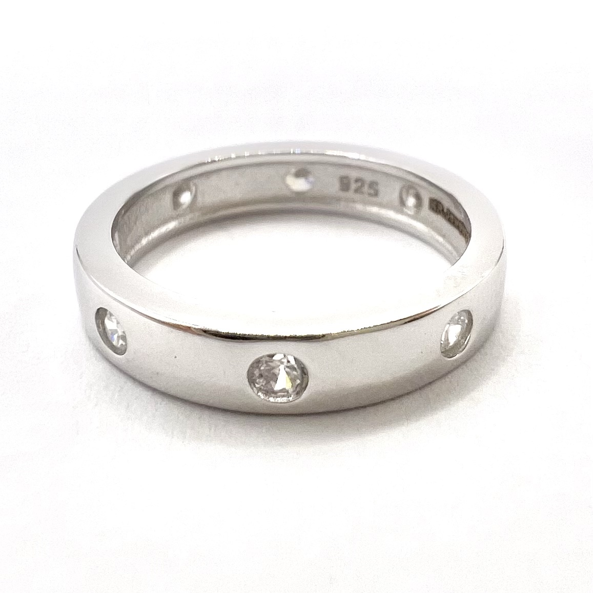 טבעת חלקה משובצת אבני זרקון לאורך הטבעת מכסף אמיתי 925
