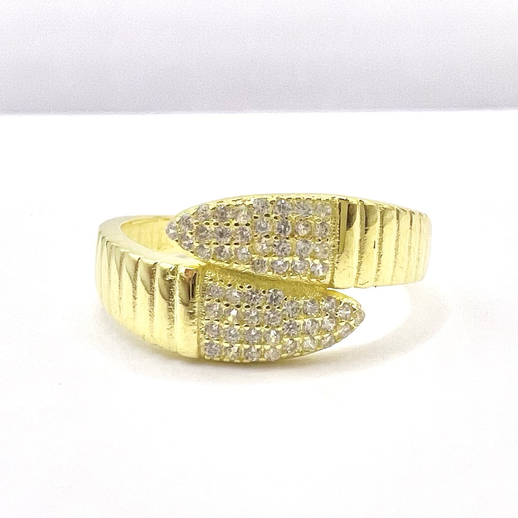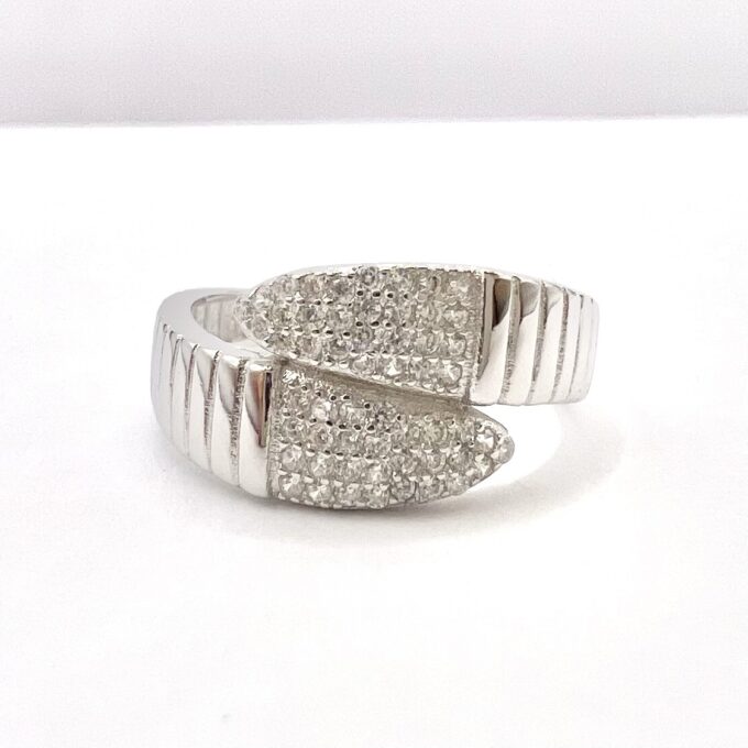 טבעת חלקה משורטטת קווים עם חצים משובצים אבני זרקון מכסף אמיתי 925