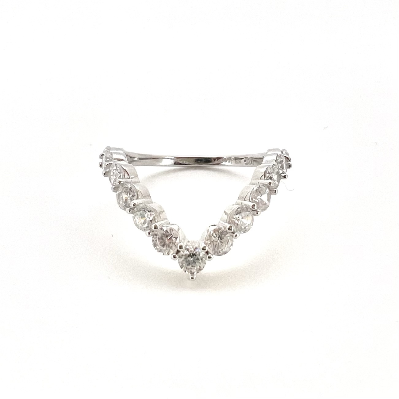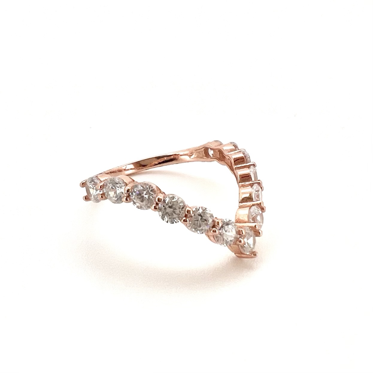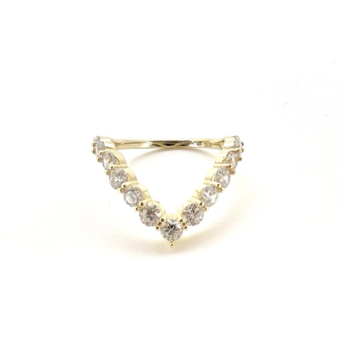 טבעת משובצת אבני זרקון בצורת וי