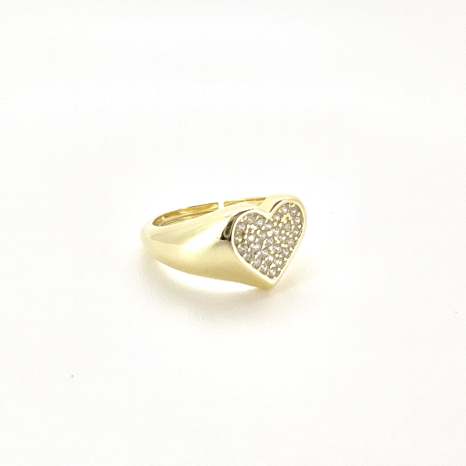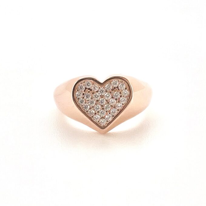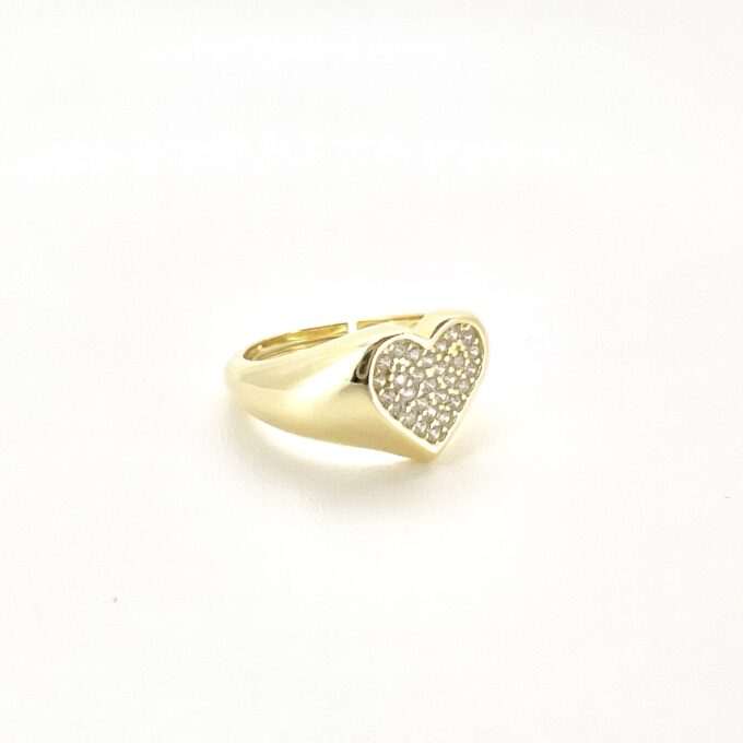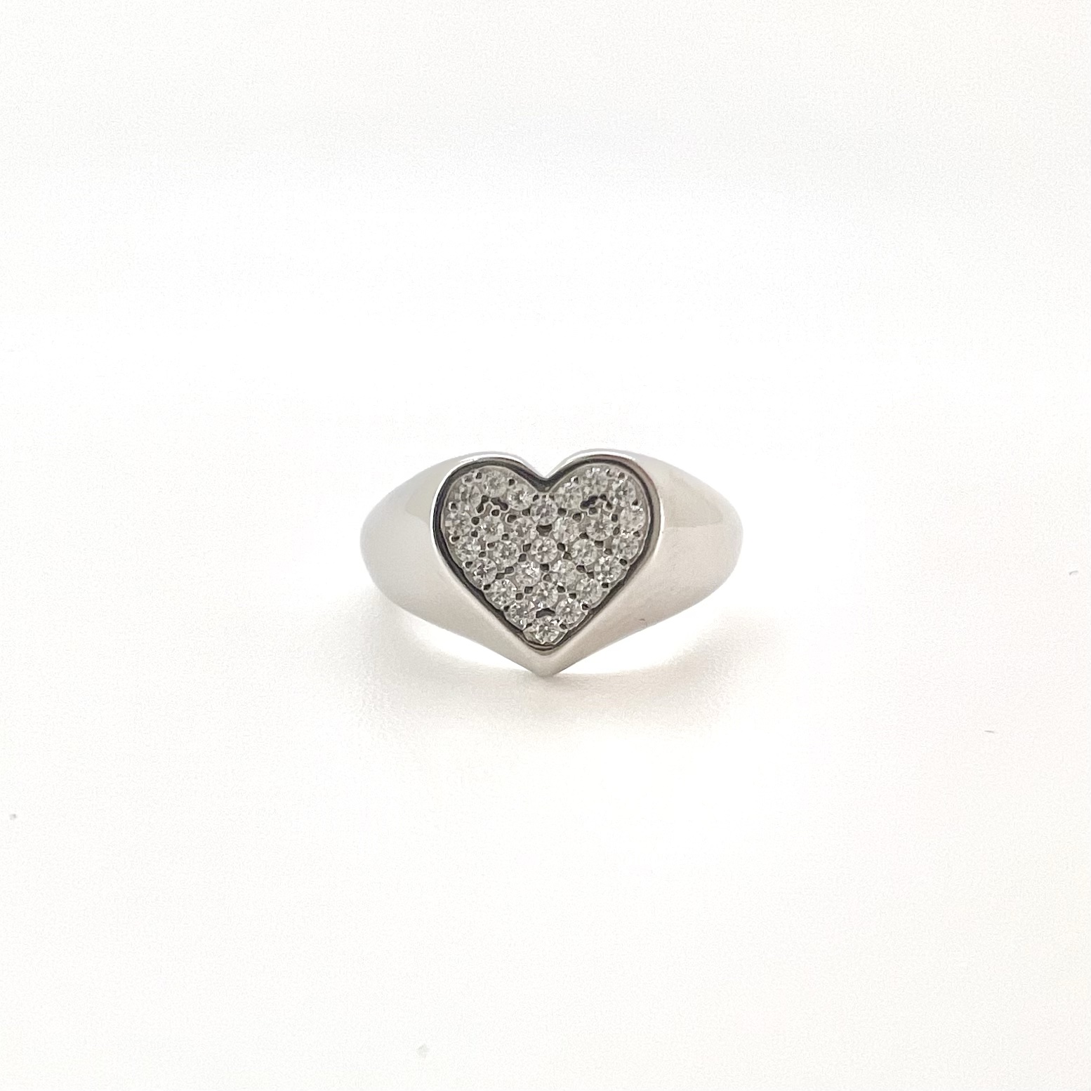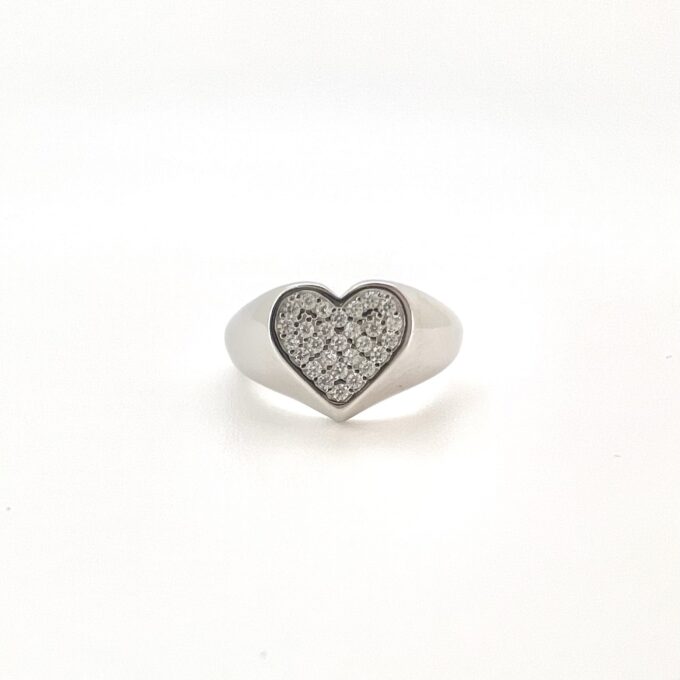 טבעת חלקה עם פלטה בצורת לב משובץ אבני זרקון מכסף אמיתי 925