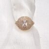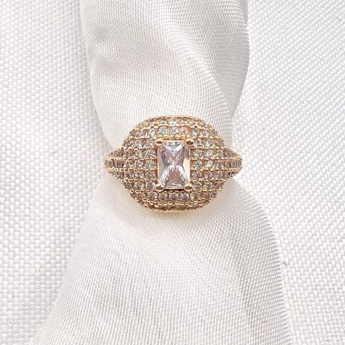 טבעת עם פלטה משובצת אבני זרקון ואבן זרקון גדולה במרכזה מרודיום איכותי