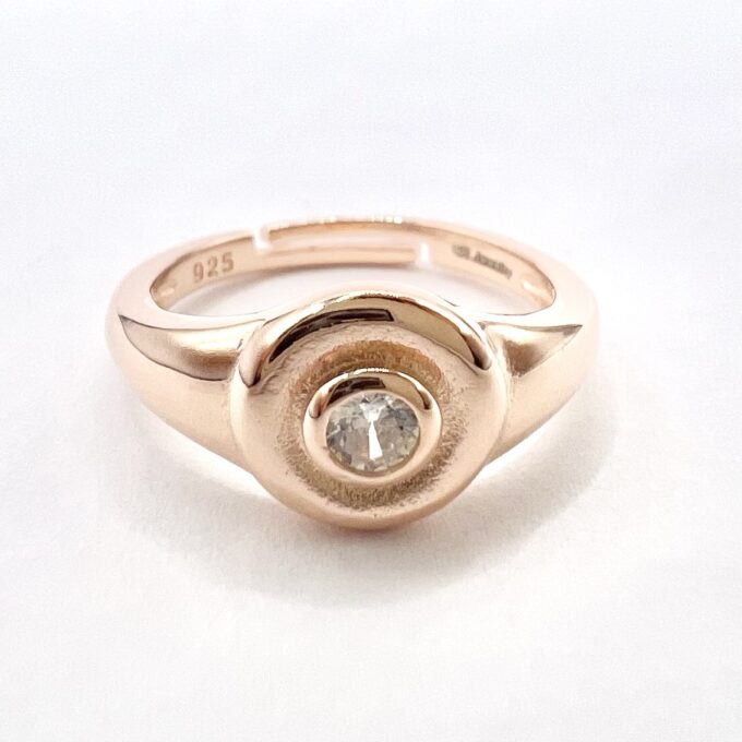 טבעת לזרת חותם פלטה על פלטה משובצת אבן זרקון מכסף אמיתי 925