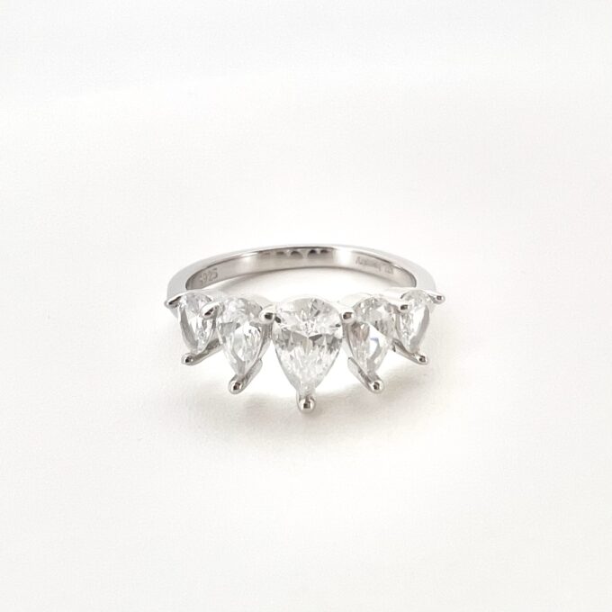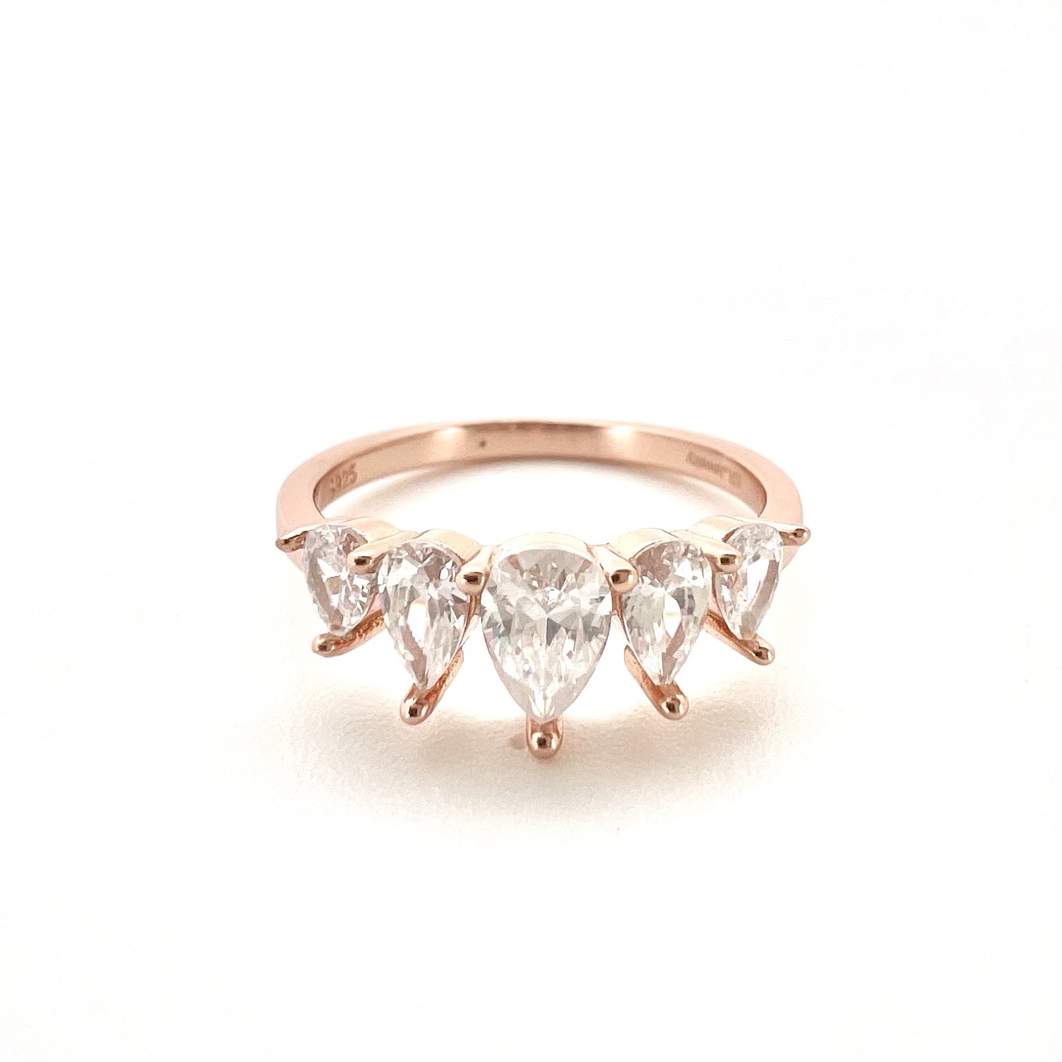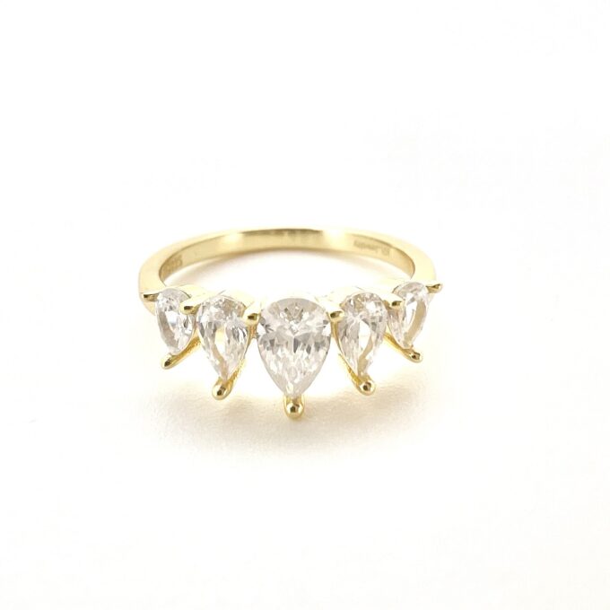 טבעת משובצת אבני זרקון בצורת טיפות מדורגות