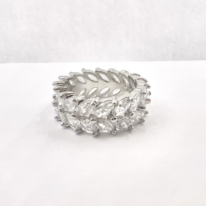 טבעת משובצת אבני זרקון בצורת טיפות לכל אורך הטבעת