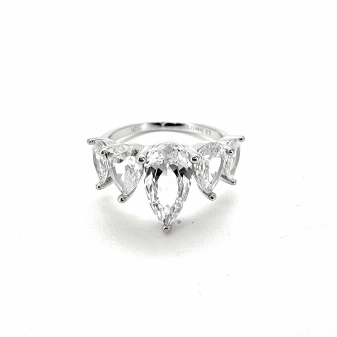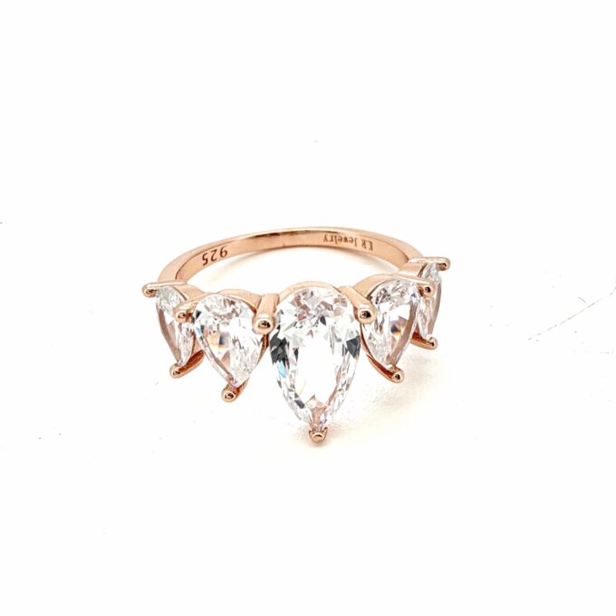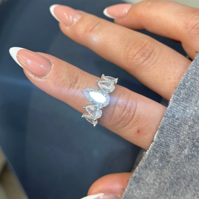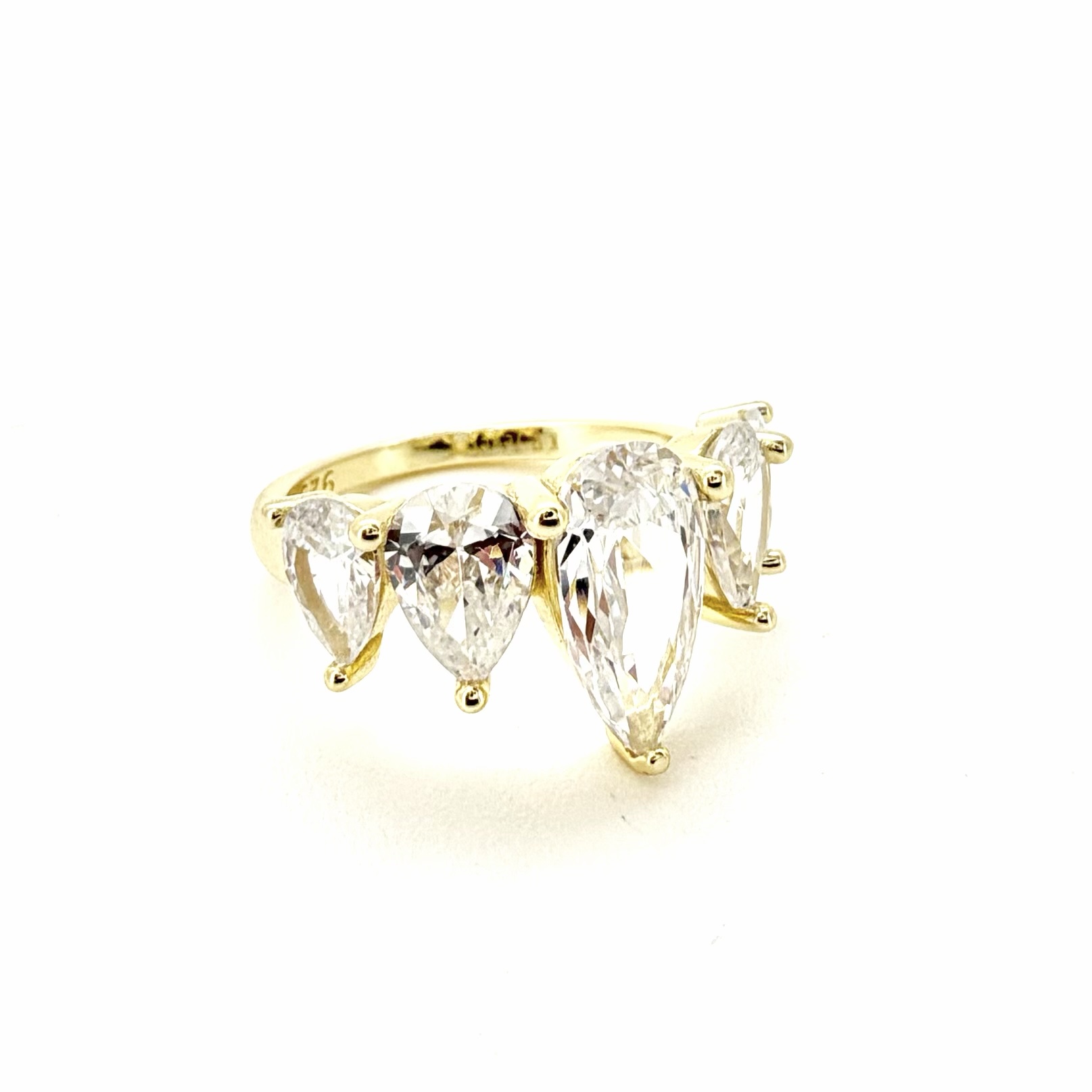 טבעת משובצת אבני זרקון בצורת טיפות מדורגות