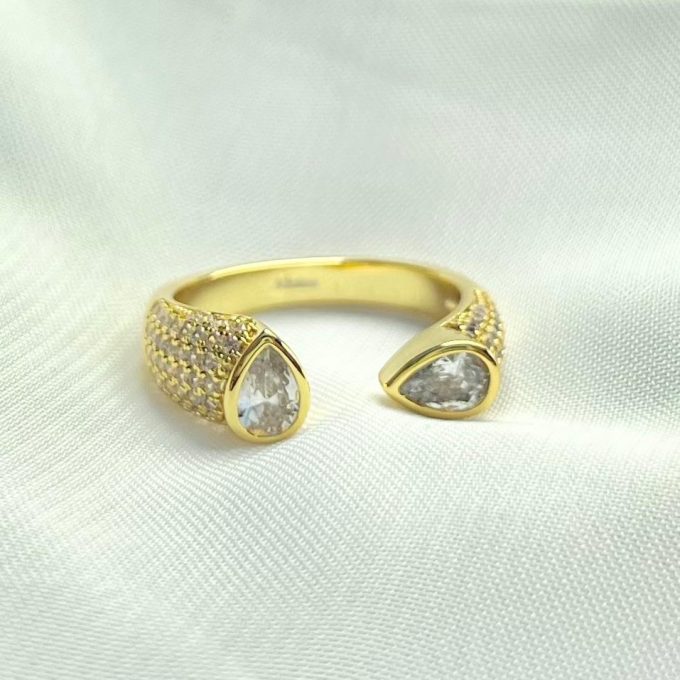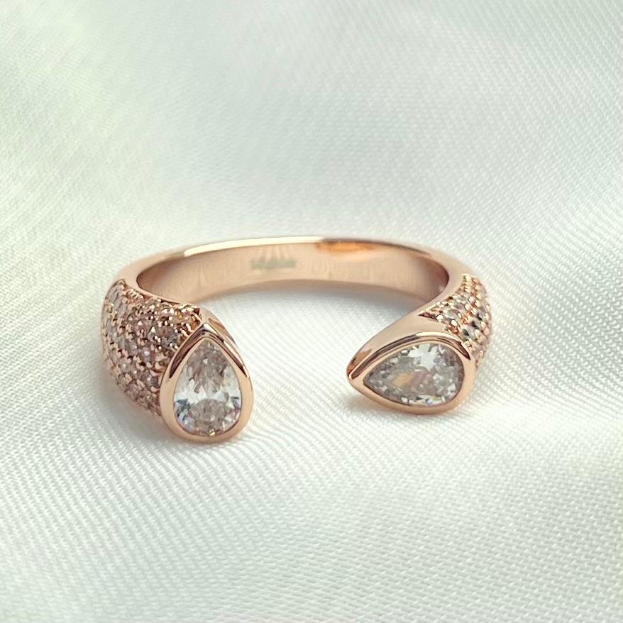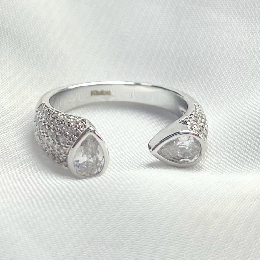 טבעת משובצת עם שתי אבני טיפות מרודיום איכותי