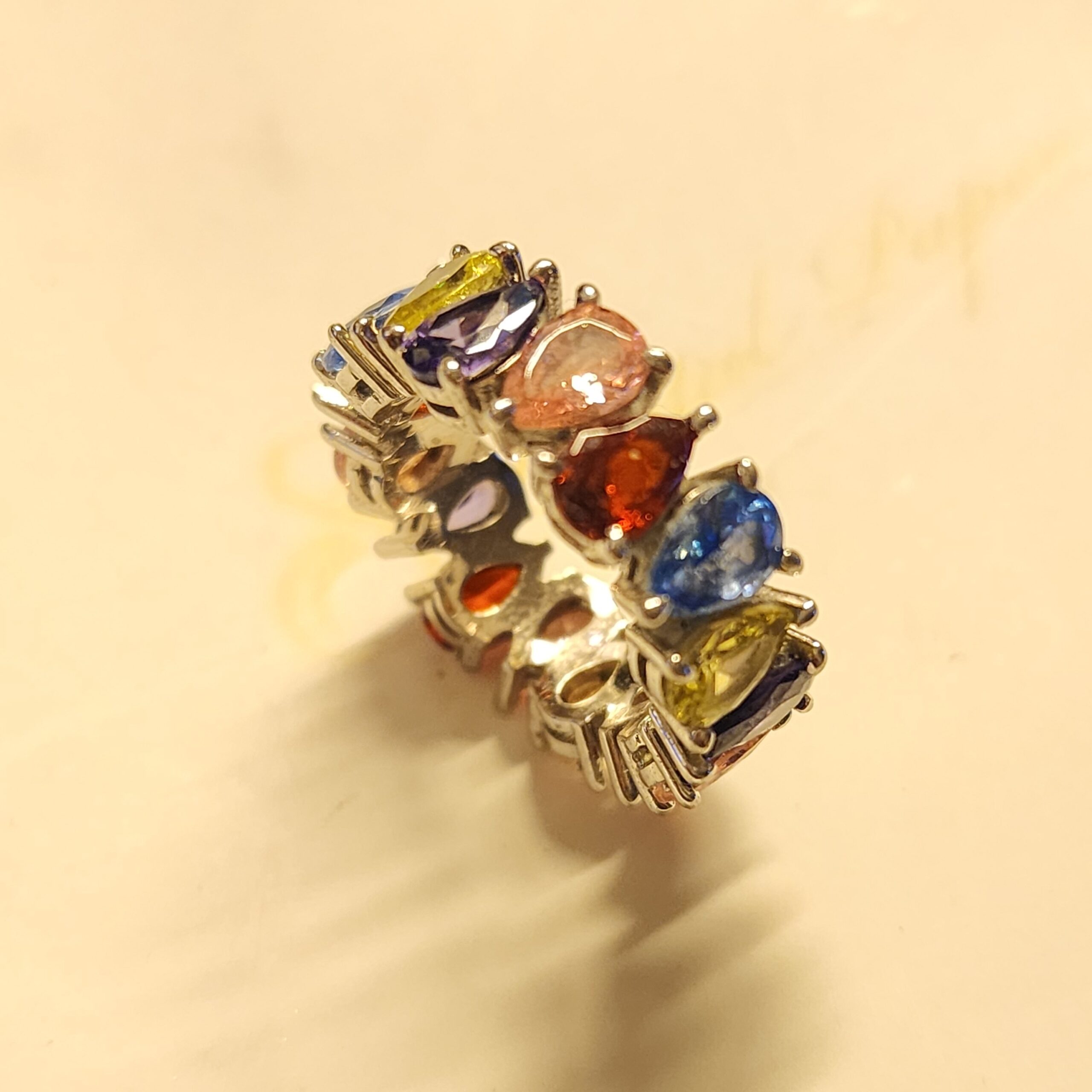 טבעת טיפות צבעוניות מרודיום איכותי מידות 5-9