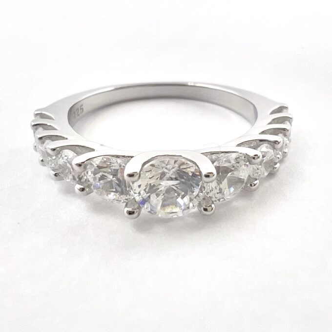 טבעת משובצת אבני זרקון מכסף אמיתי 925