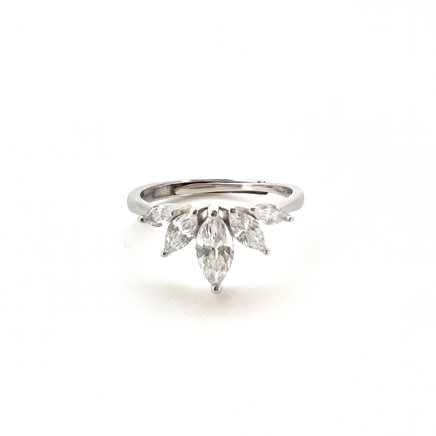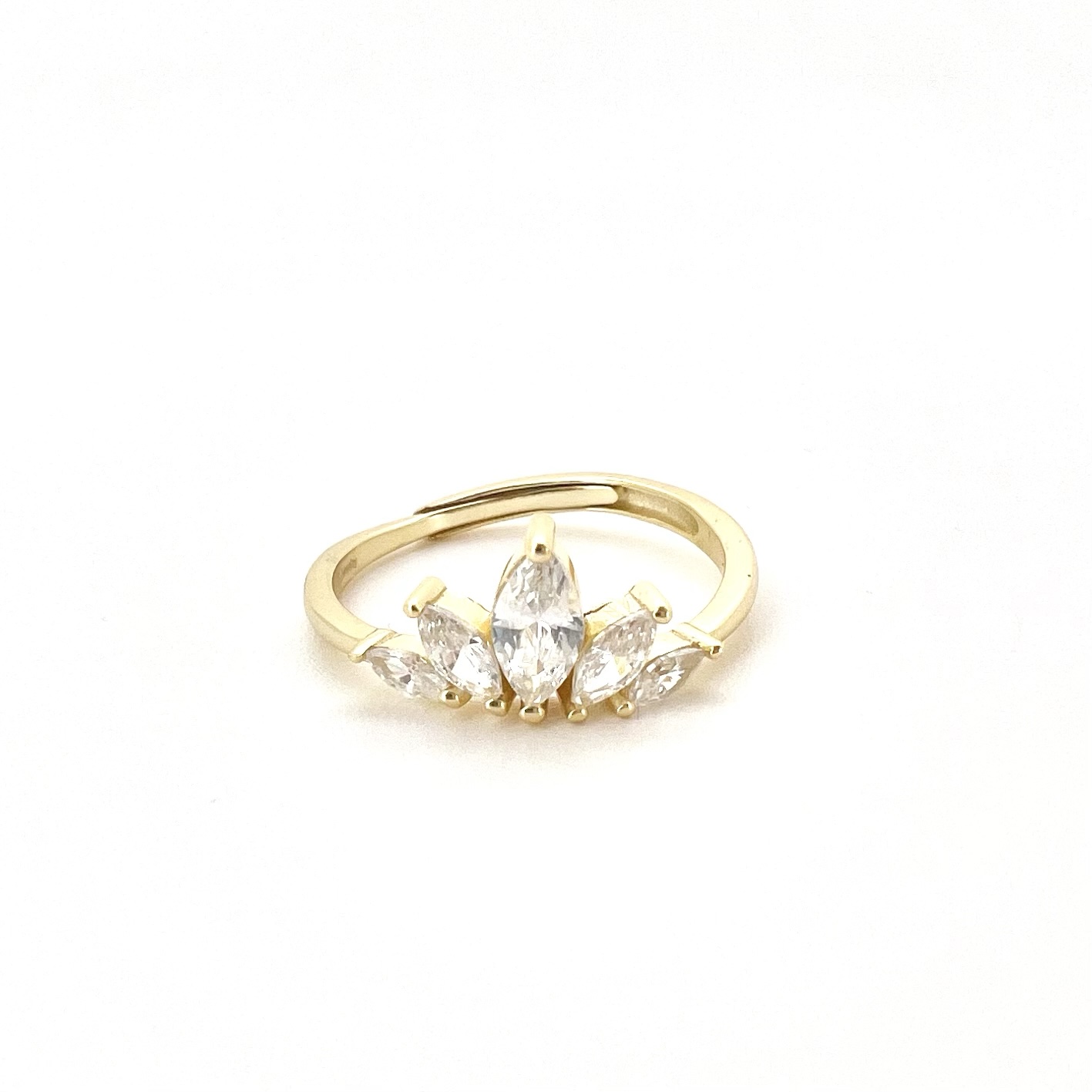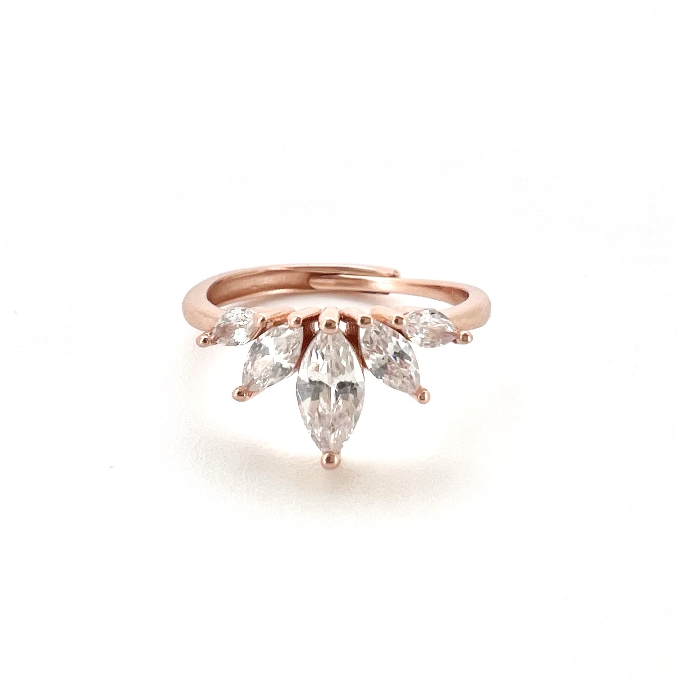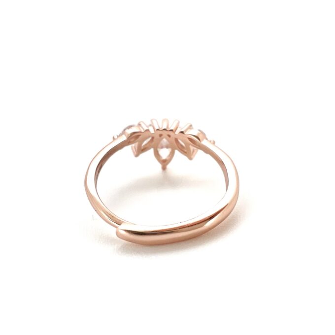 טבעת חלקה משובצת אבני זרקון בצורת לוטוס