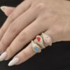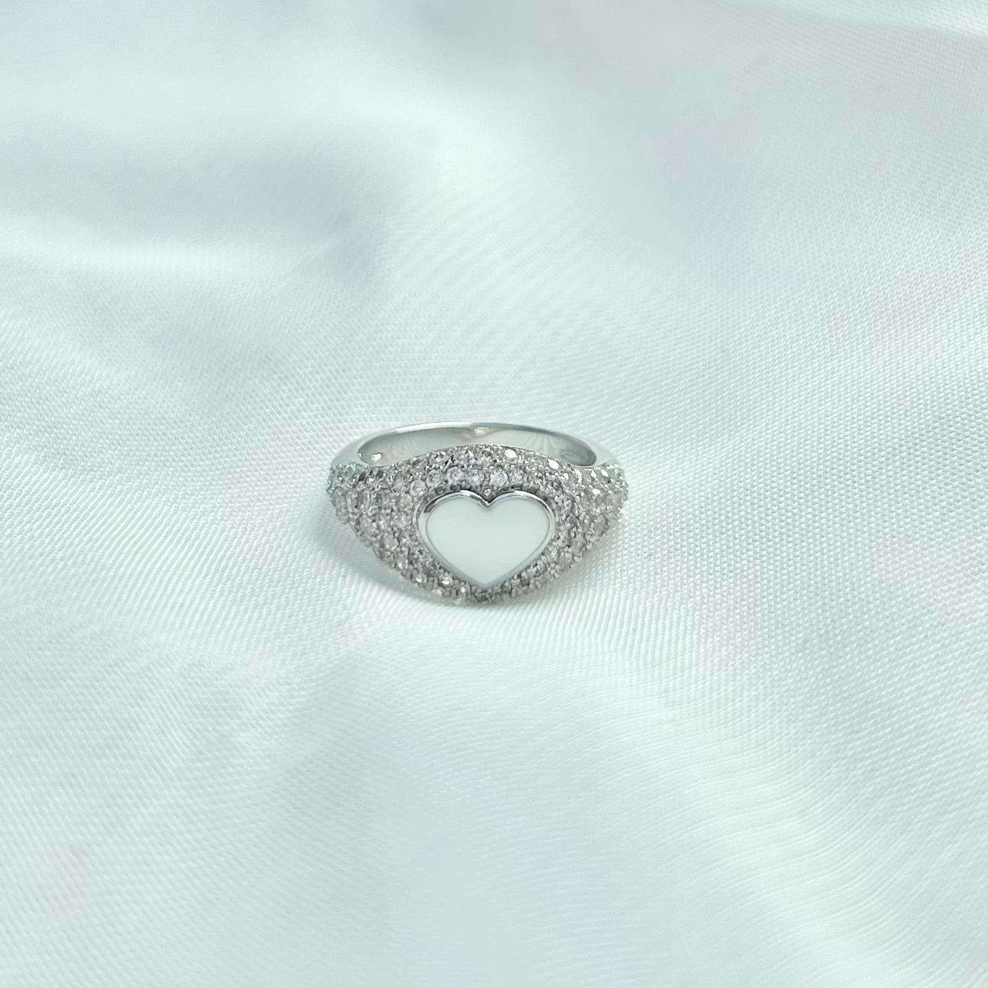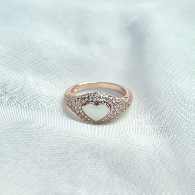 טבעת חותם משובצת אבני זרקון עם לב קרמי מרודיום איכותי