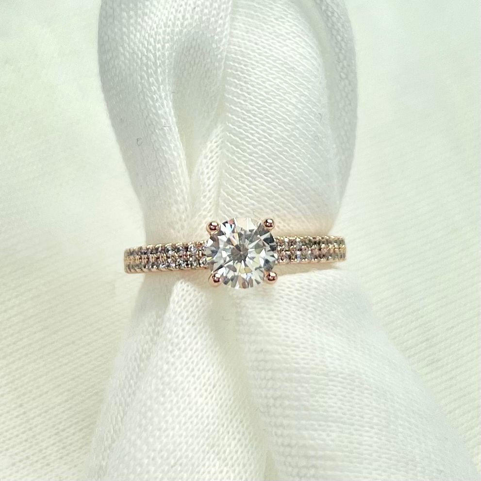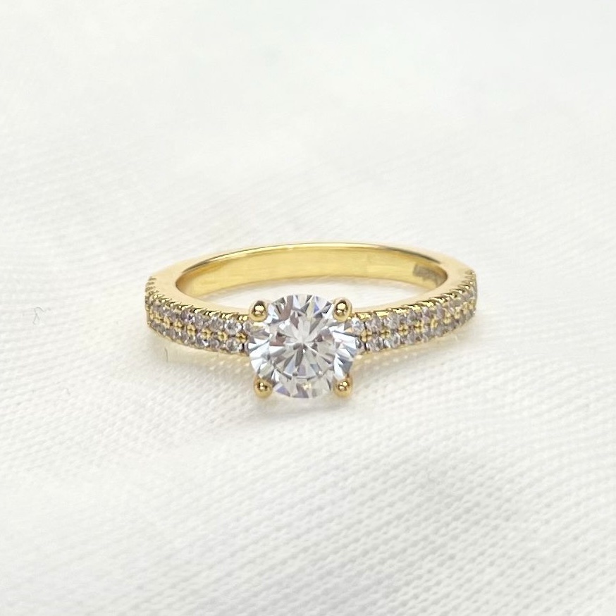 טבעת סוליטר משובצת עם אבן עגולה במרכז מכסף רודיום איכותי. מגיעה בכסף רוז וזהב