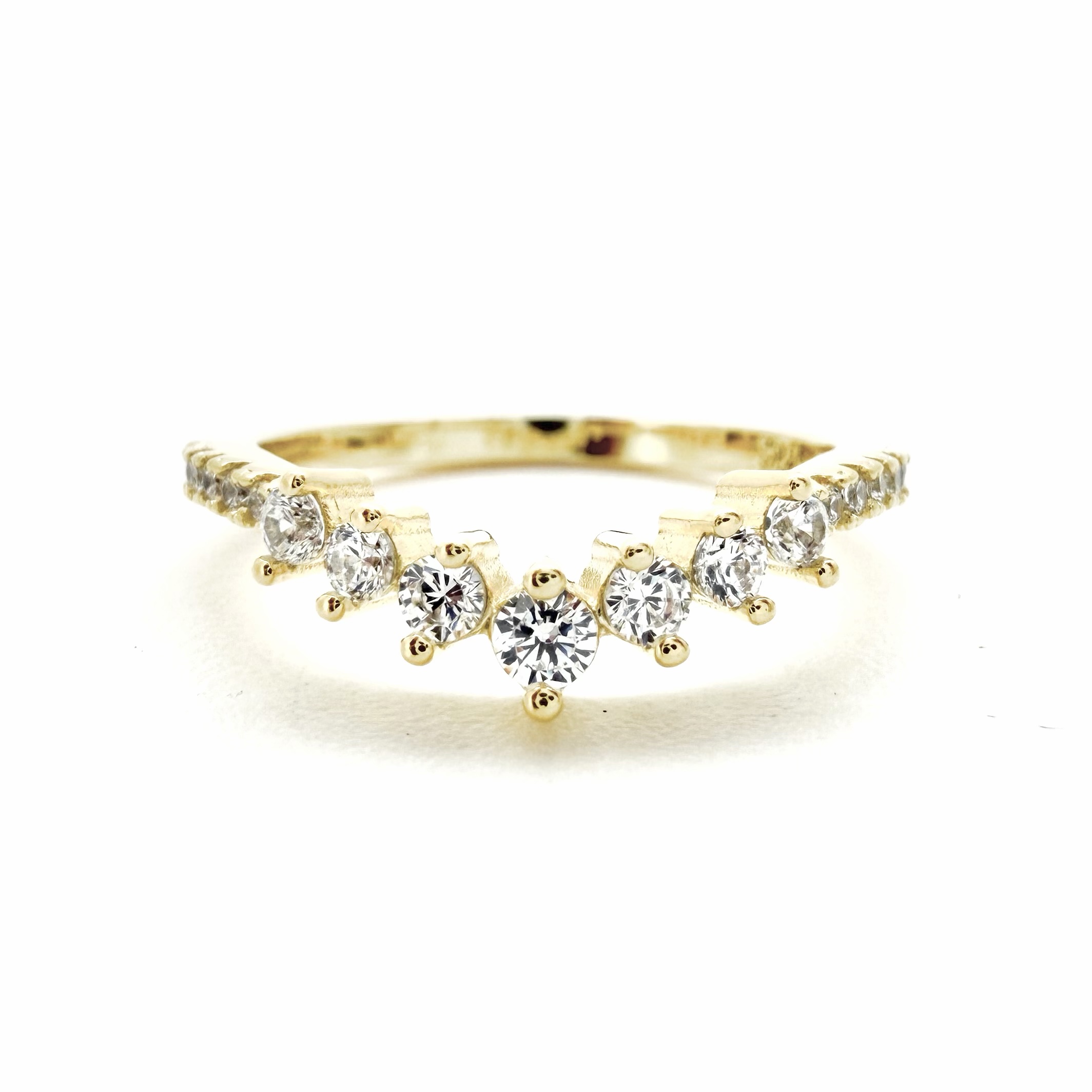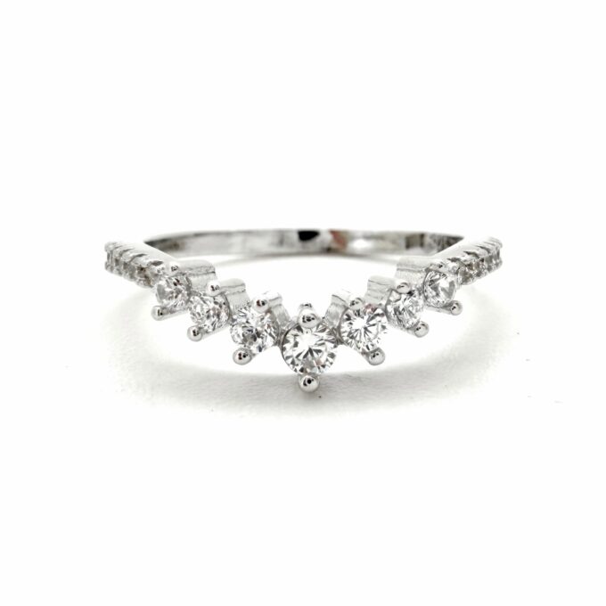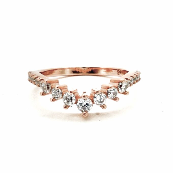 טבעת משובצת אבני זרקון בצורת וי