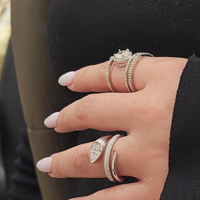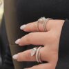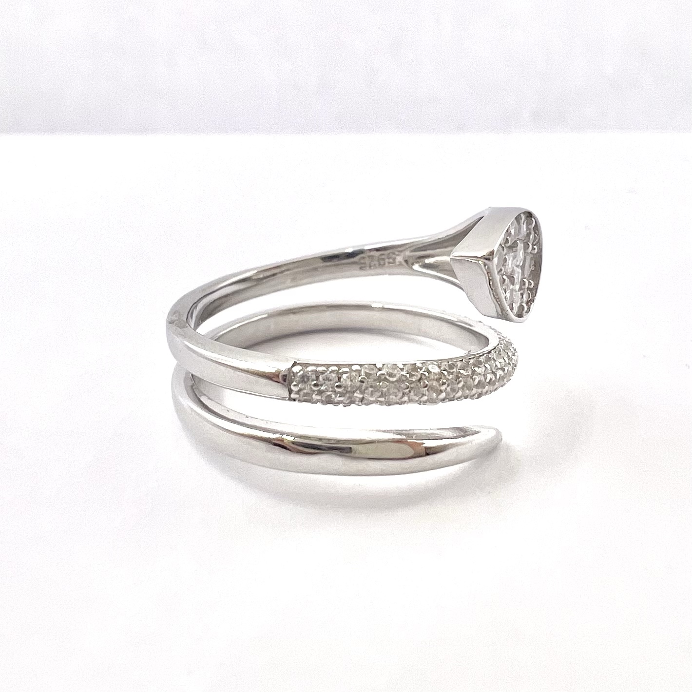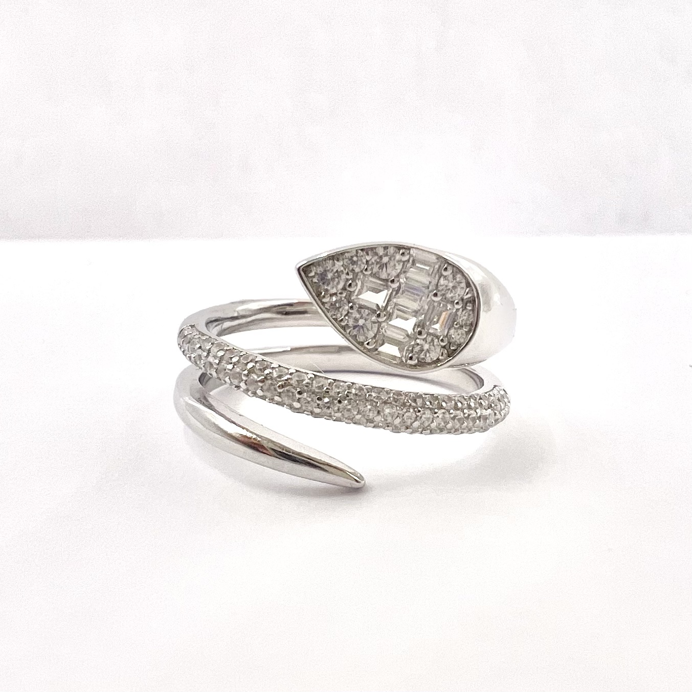 טבעת מסולסלות עם שיבוץ אבני זרקון ומסגרת בצורת טיפה משובצת אבני זרקון מכסף אמיתי 925