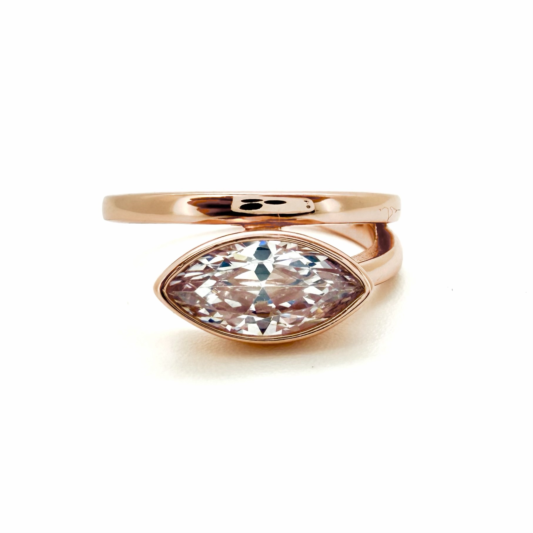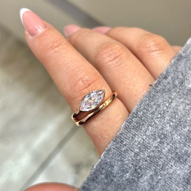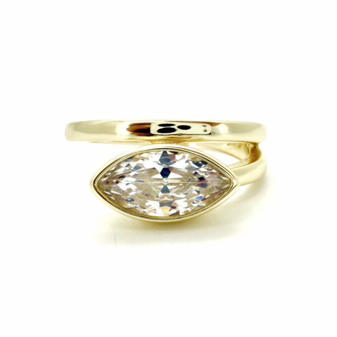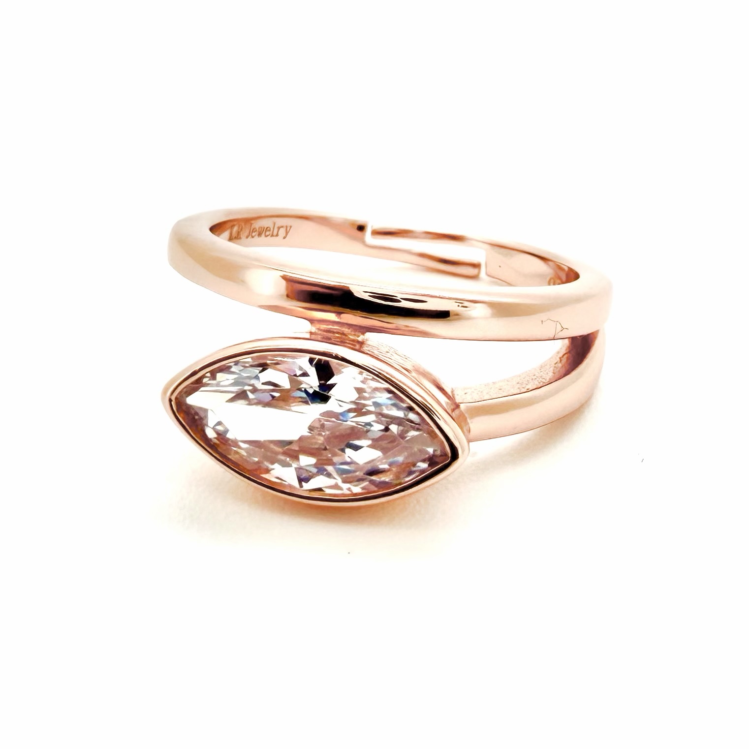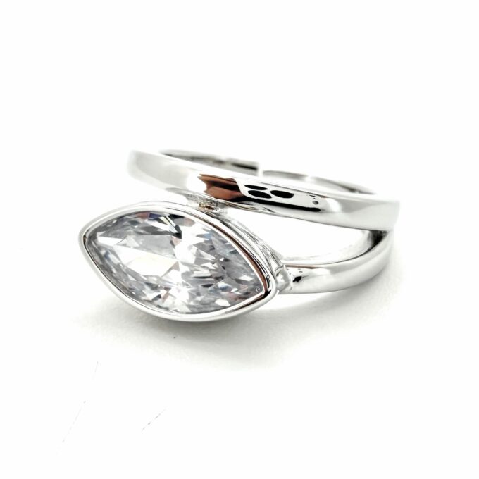 טבעת מסולסלת עם אבן זרקון משובצת בצורת טיפה
