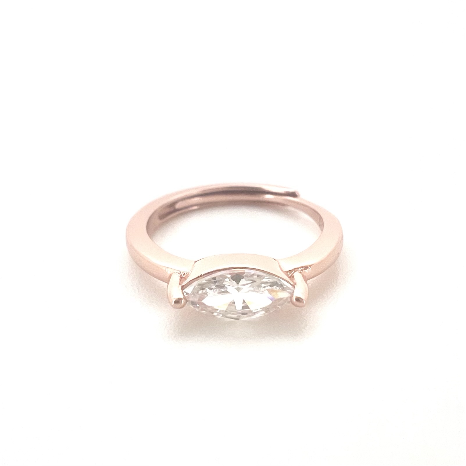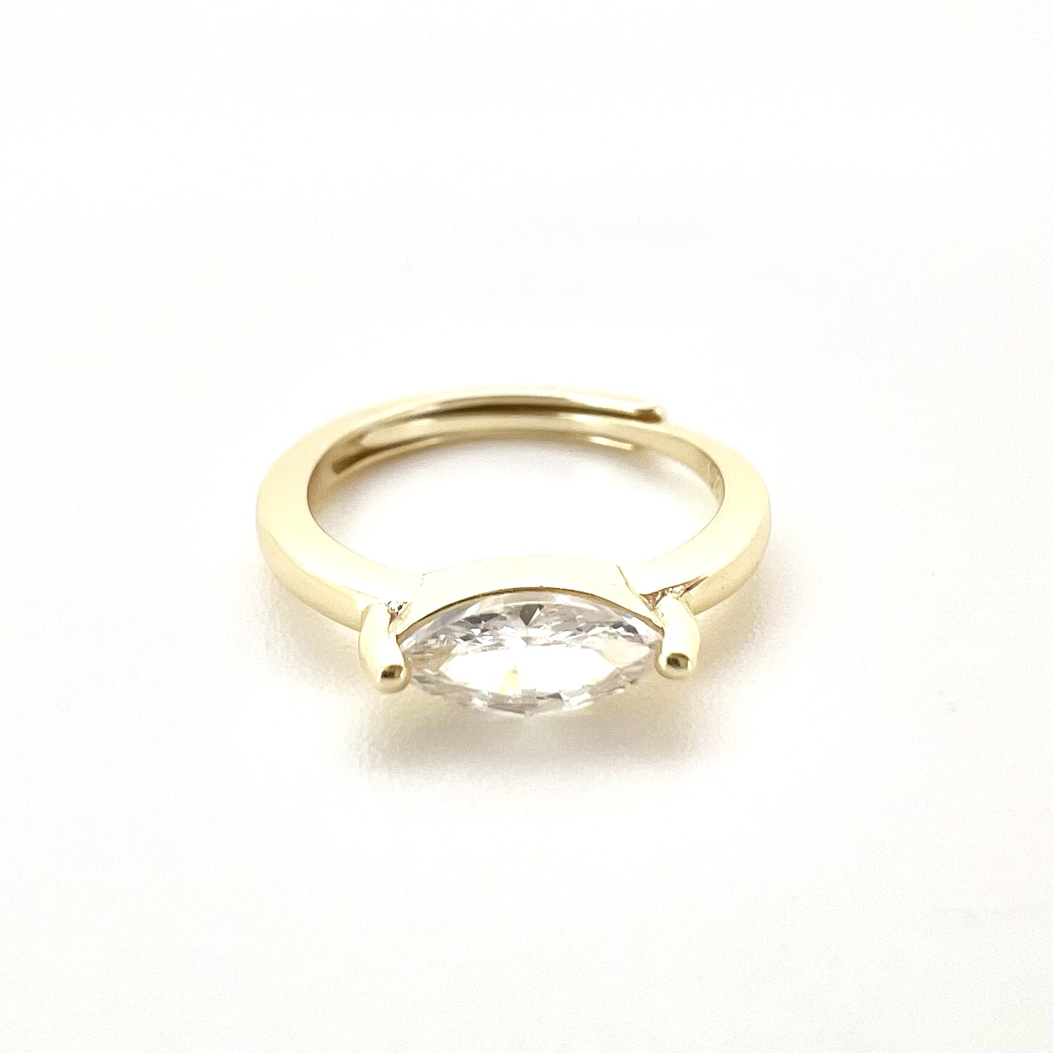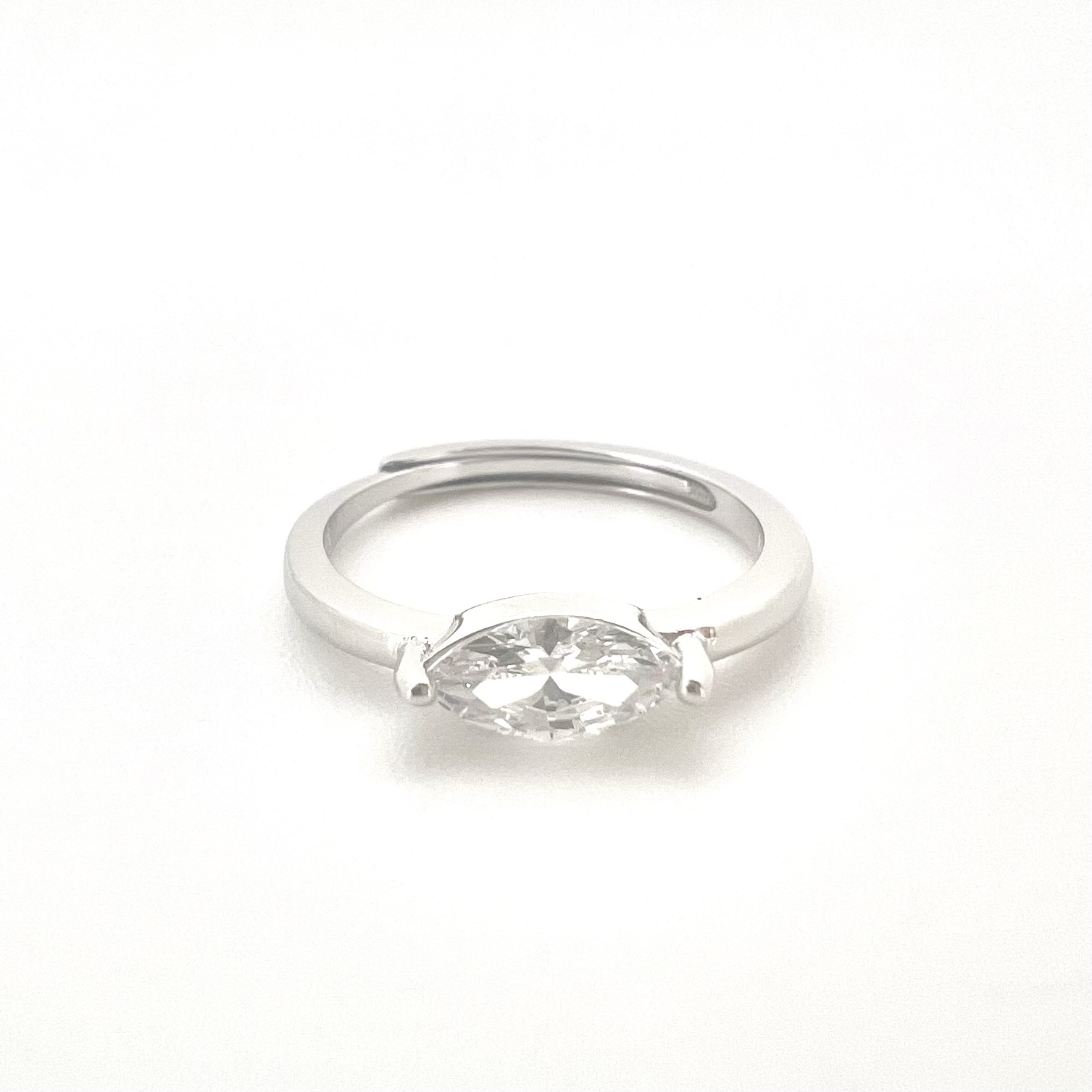 טבעת חלקה משובצת אבן זרקון בצורת מרקיזה לרוחב