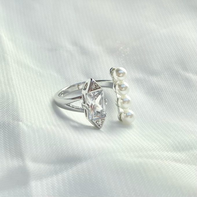 טבעת מותאמת לכל מידת אצבע (נפתחת ונסגרת) עם פנינים ואבן בצידה השני מרודיום איכותי