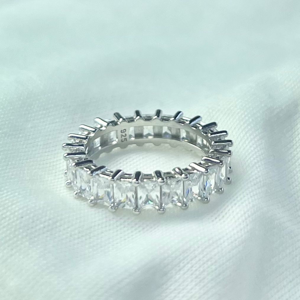 טבעת משובצת אבנים מלבניות מכסף אמיתי 925