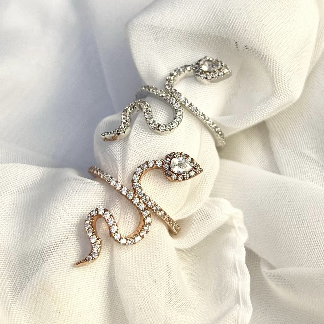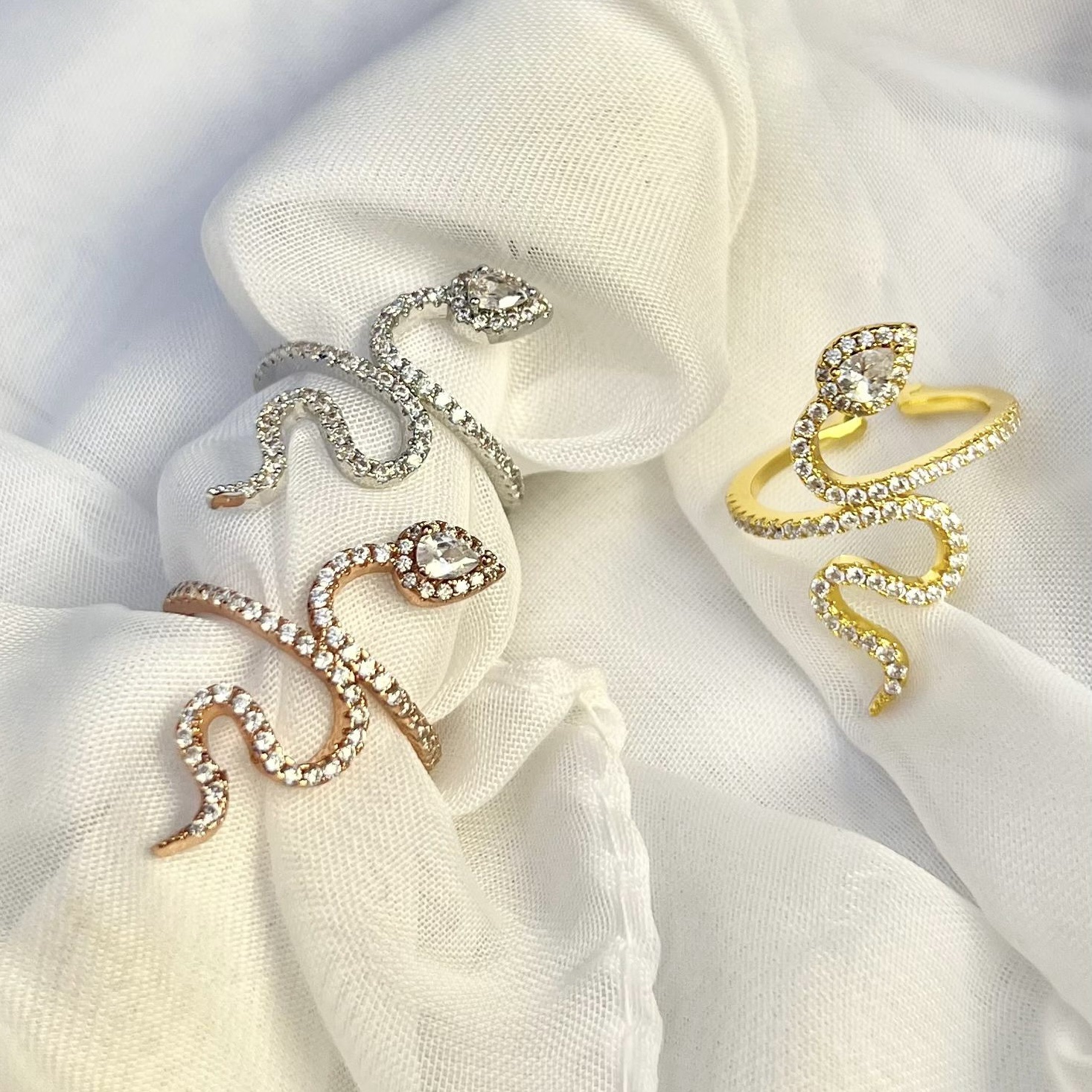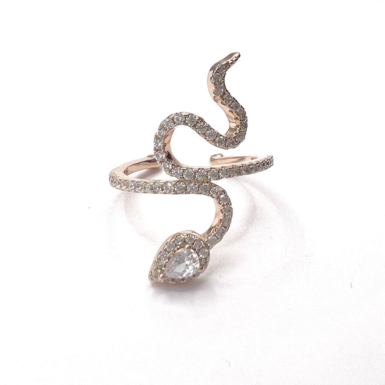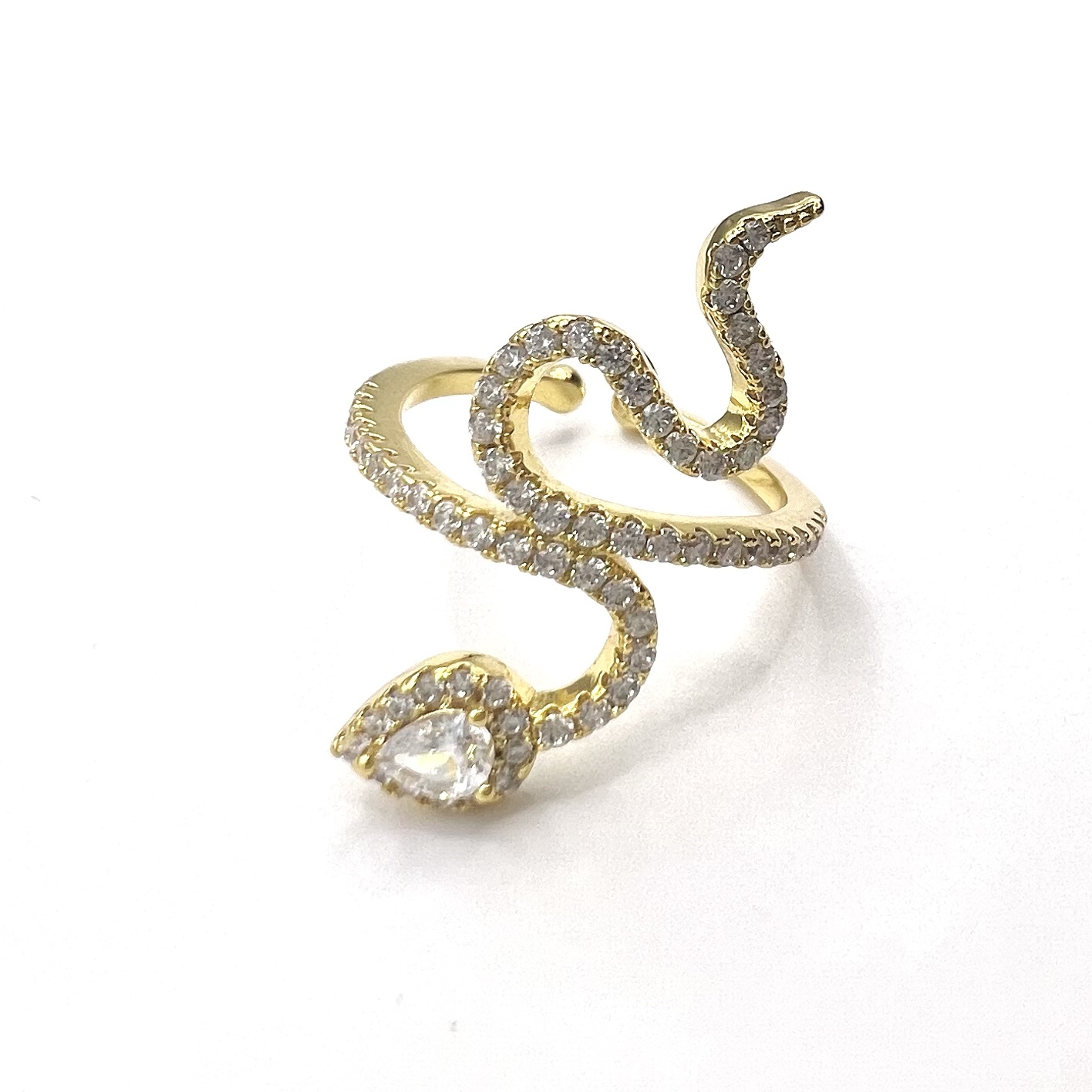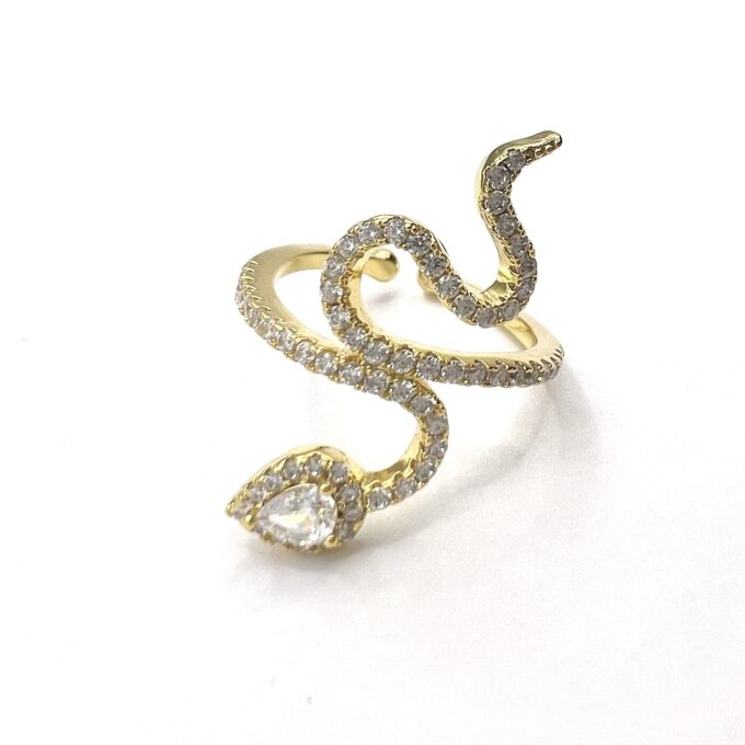 טבעת משובצת אבני זרקון שיוצרים צורה של נחש מרודיום איכותי