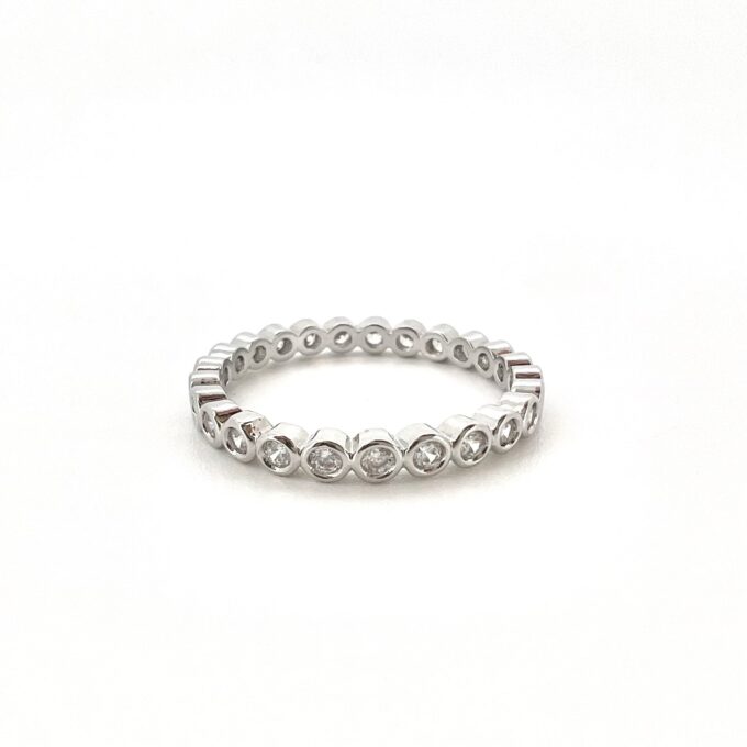 טבעת משובצת אבני זרקון לאורך הטבעת
