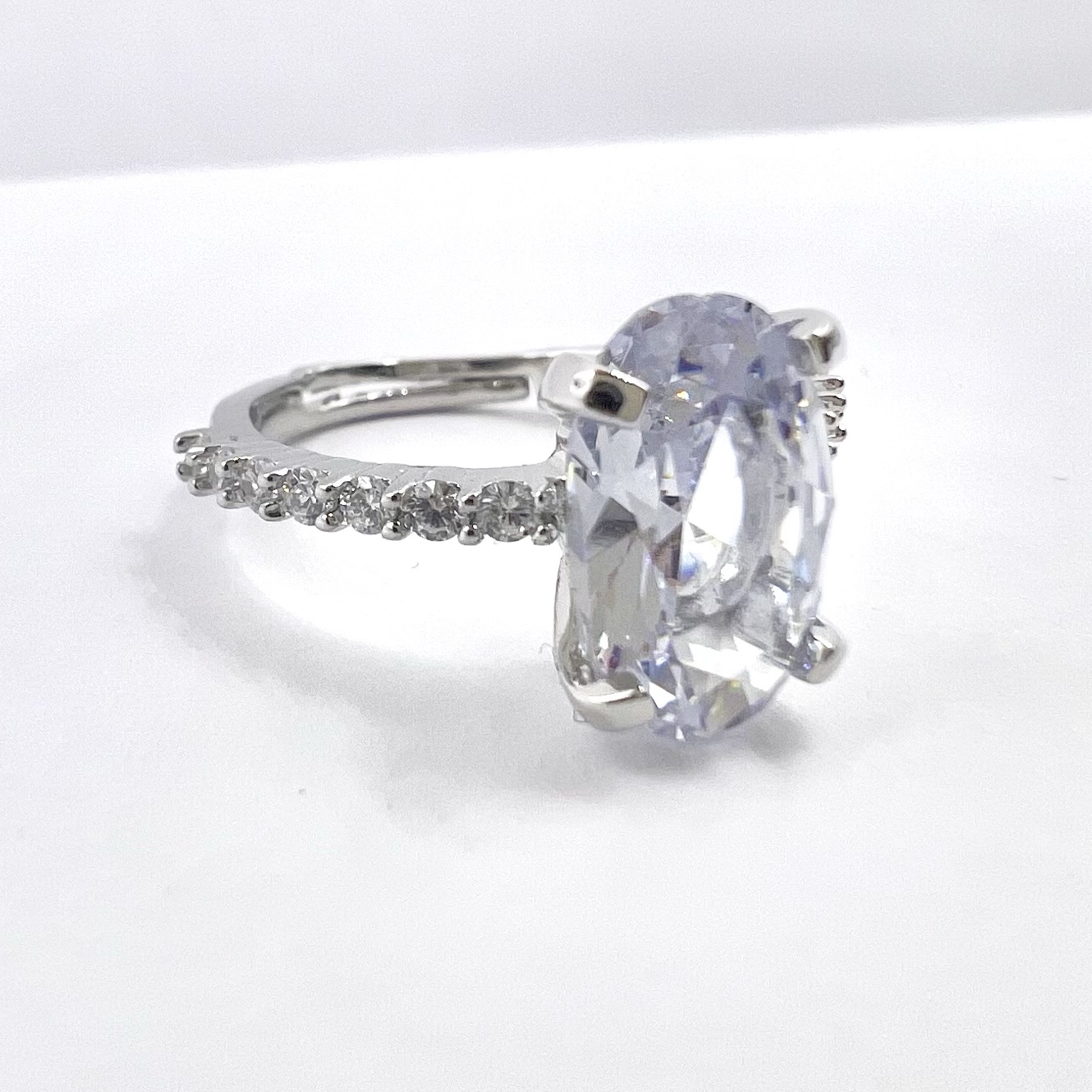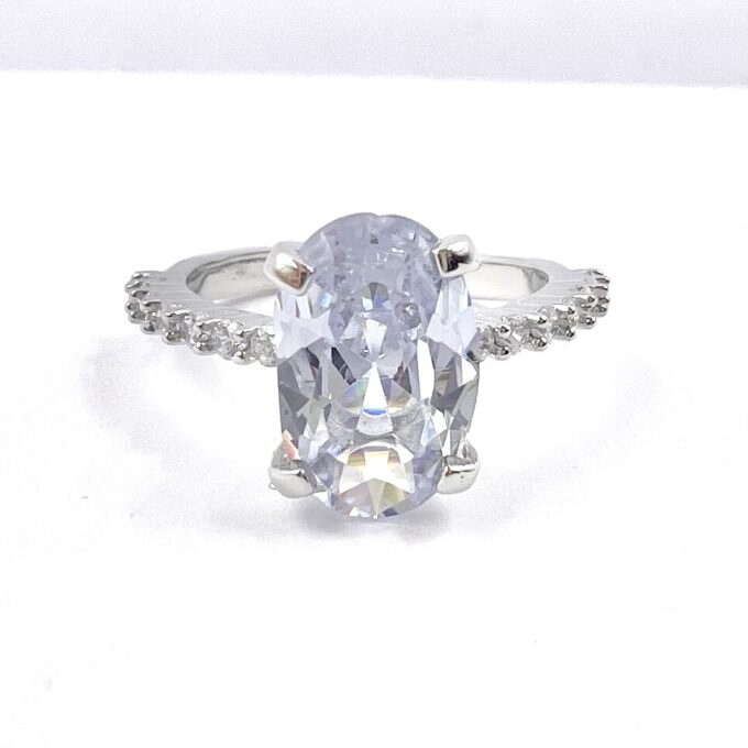 טבעת משובצת אבני זרקון לכל אורך הטבעת עם אבן זרקון גדולה במרכז מרודיום איכותי