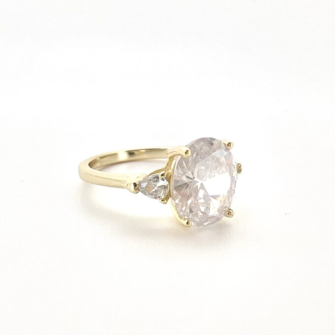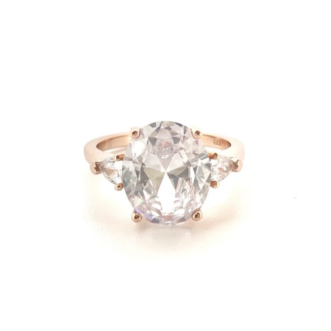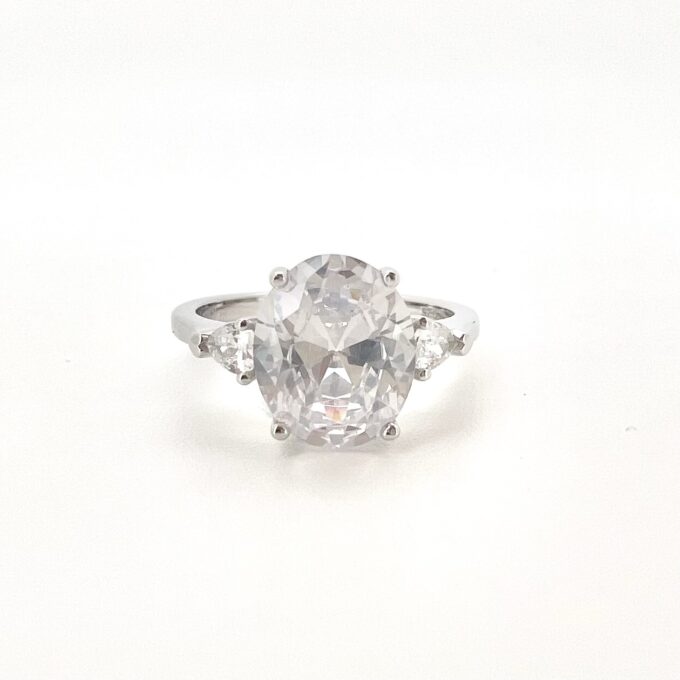 טבעת חלקה משובצת שלושה אבני זרקון מכסף אמיתי 925
