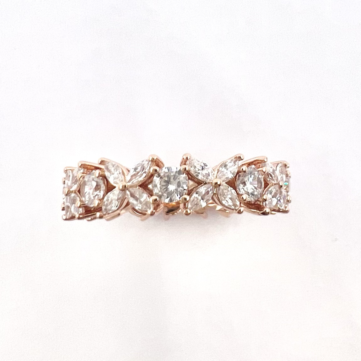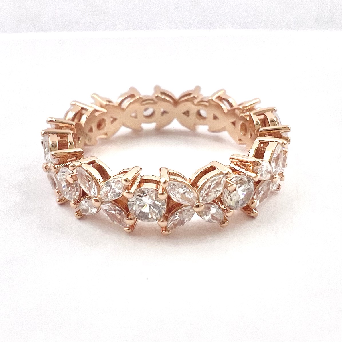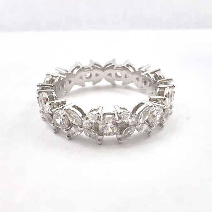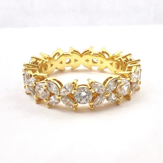טבעת משובצת אבני זרקון בצורת פרחים לכל אורך הטבעת