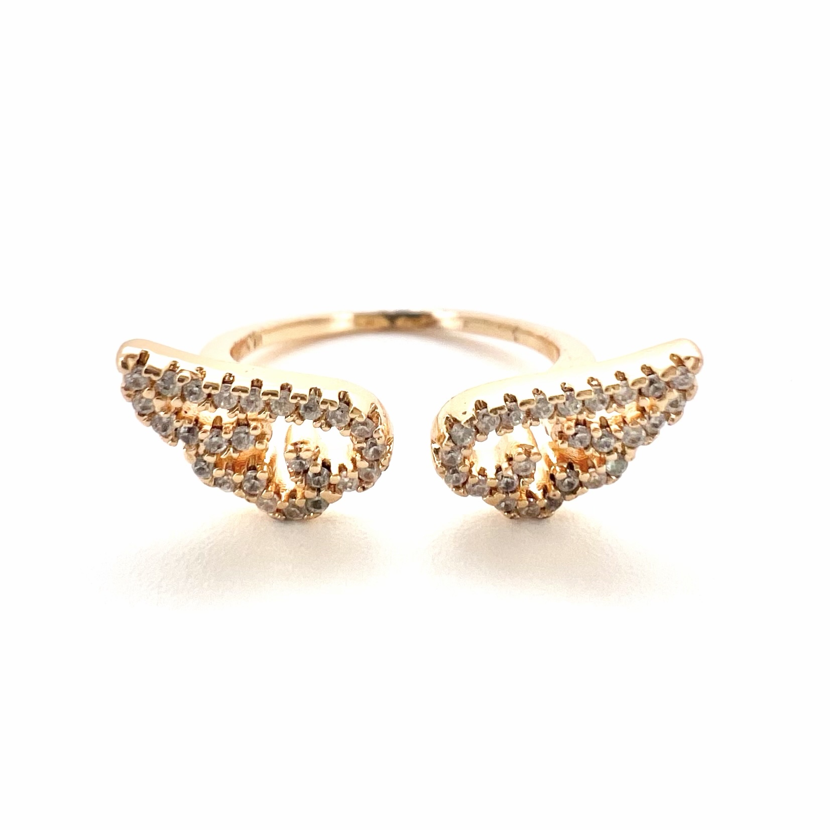 טבעת פתוחה בצורת כנפיים משובצת אבני זרקון