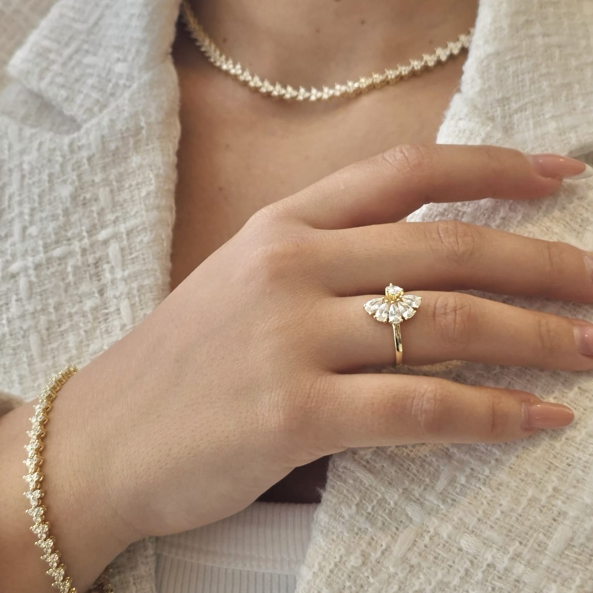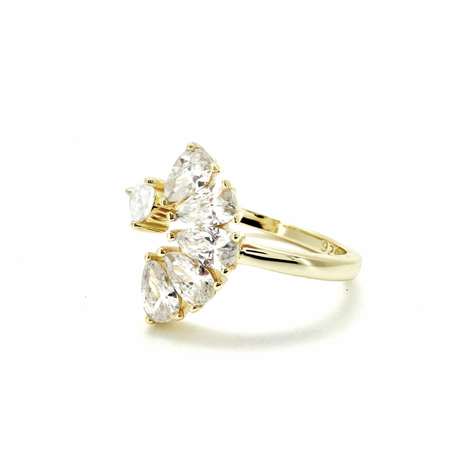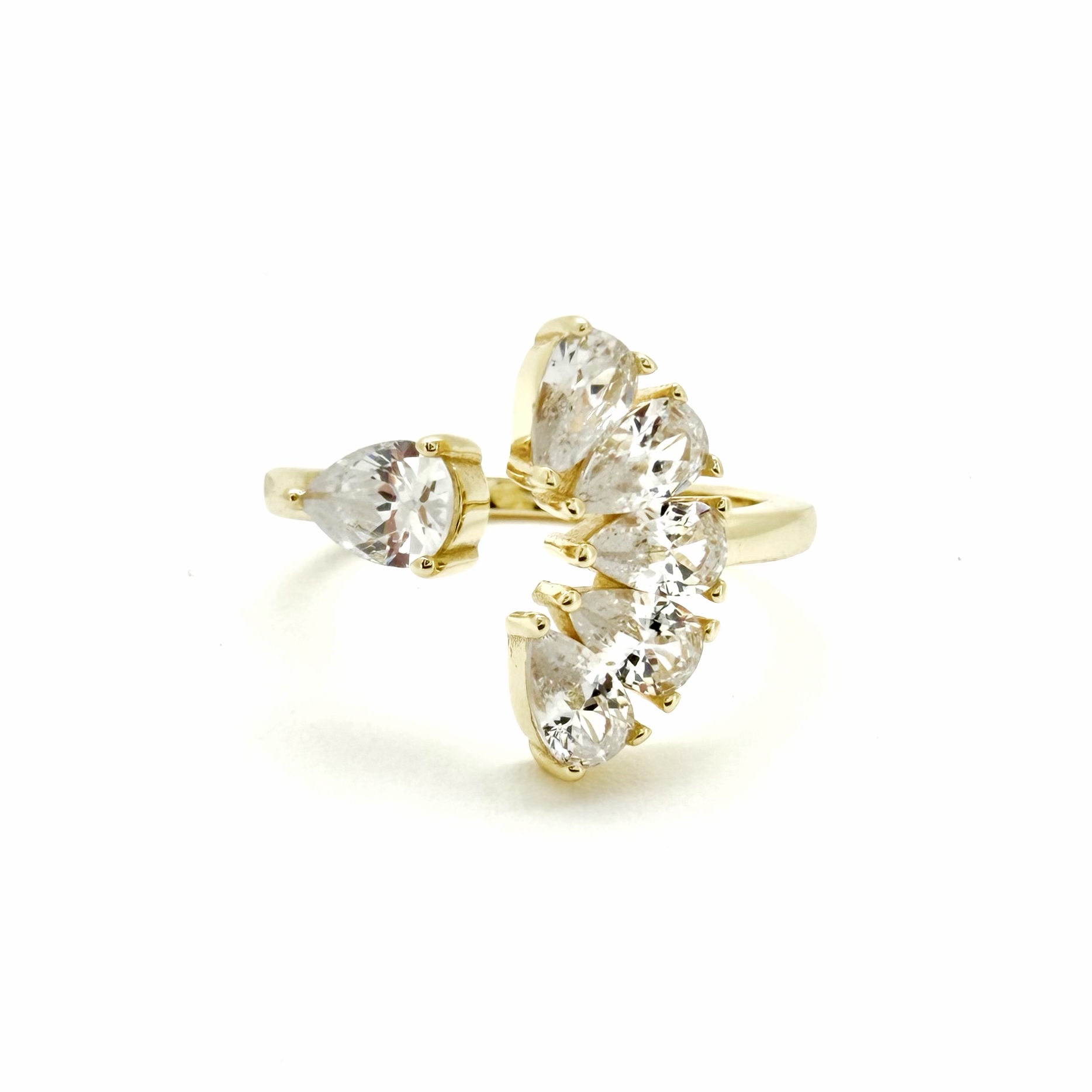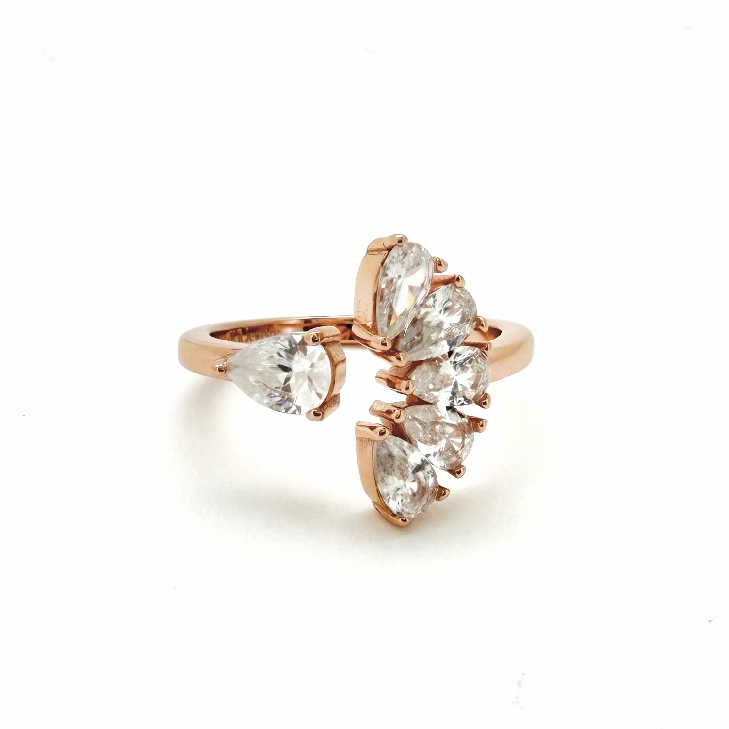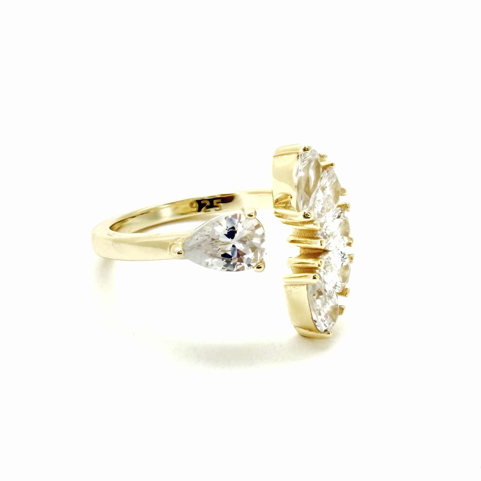 טבעת פתוחה משובצת משתי הצדדים אבני זרקון בצורת טיפה