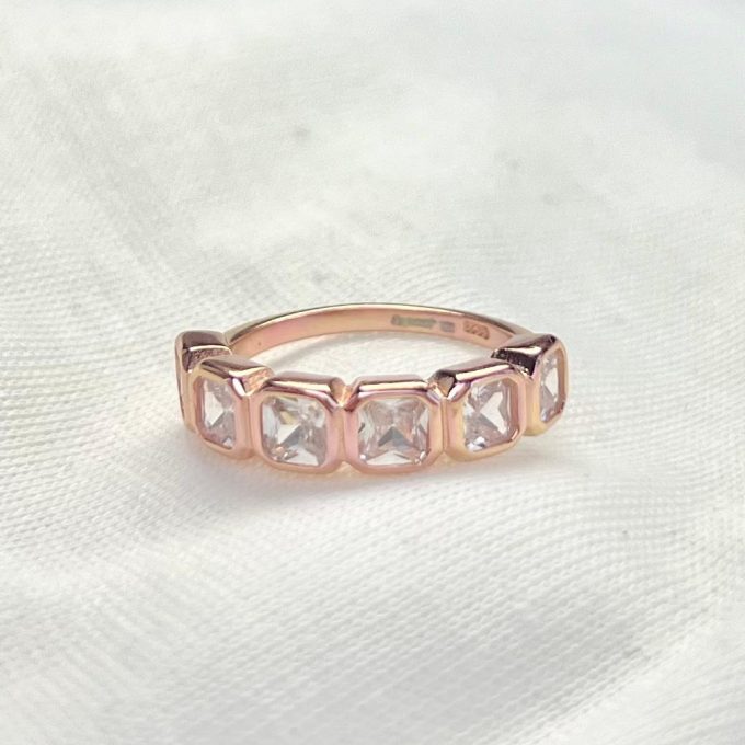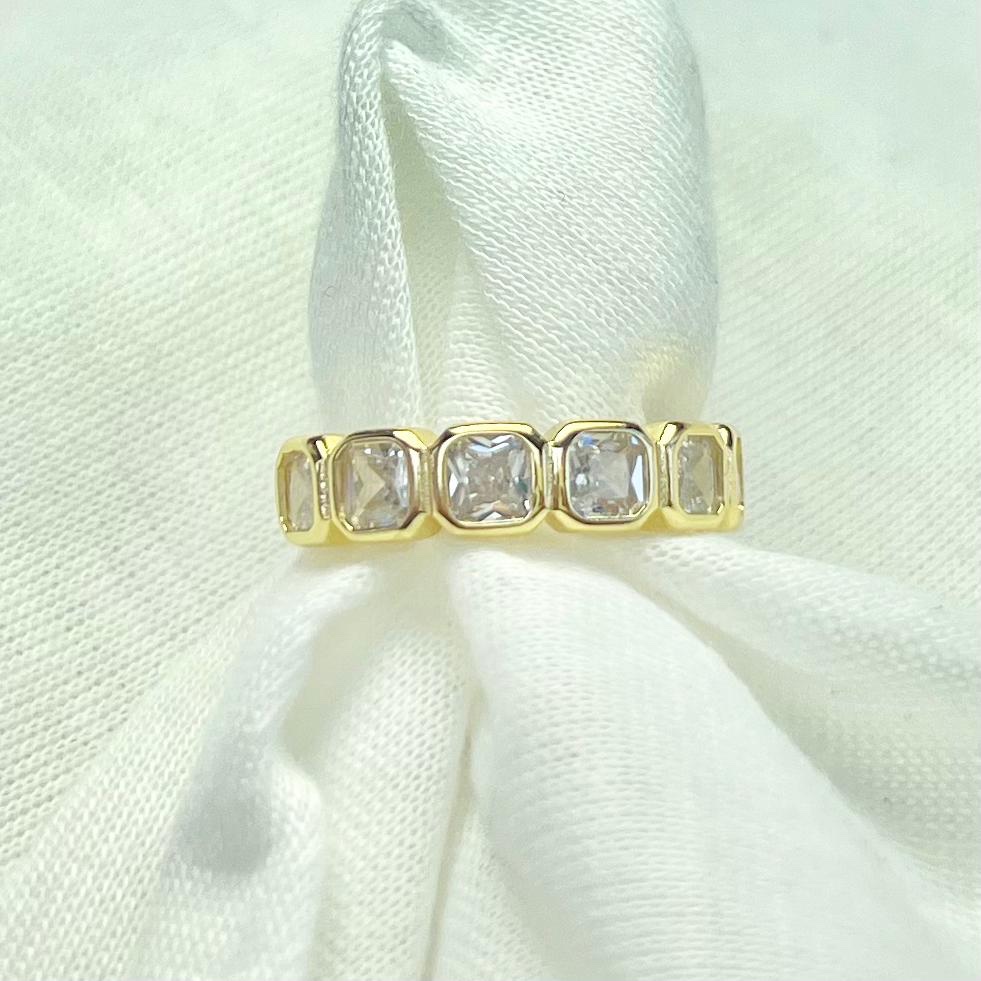 טבעת עם אבנים מרובעות מכסף אמיתי 925
