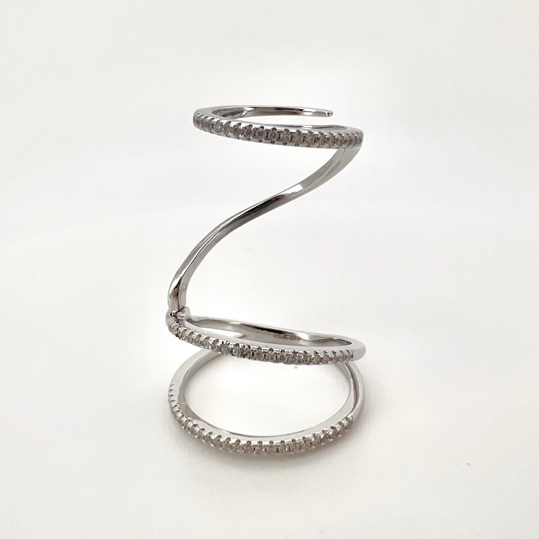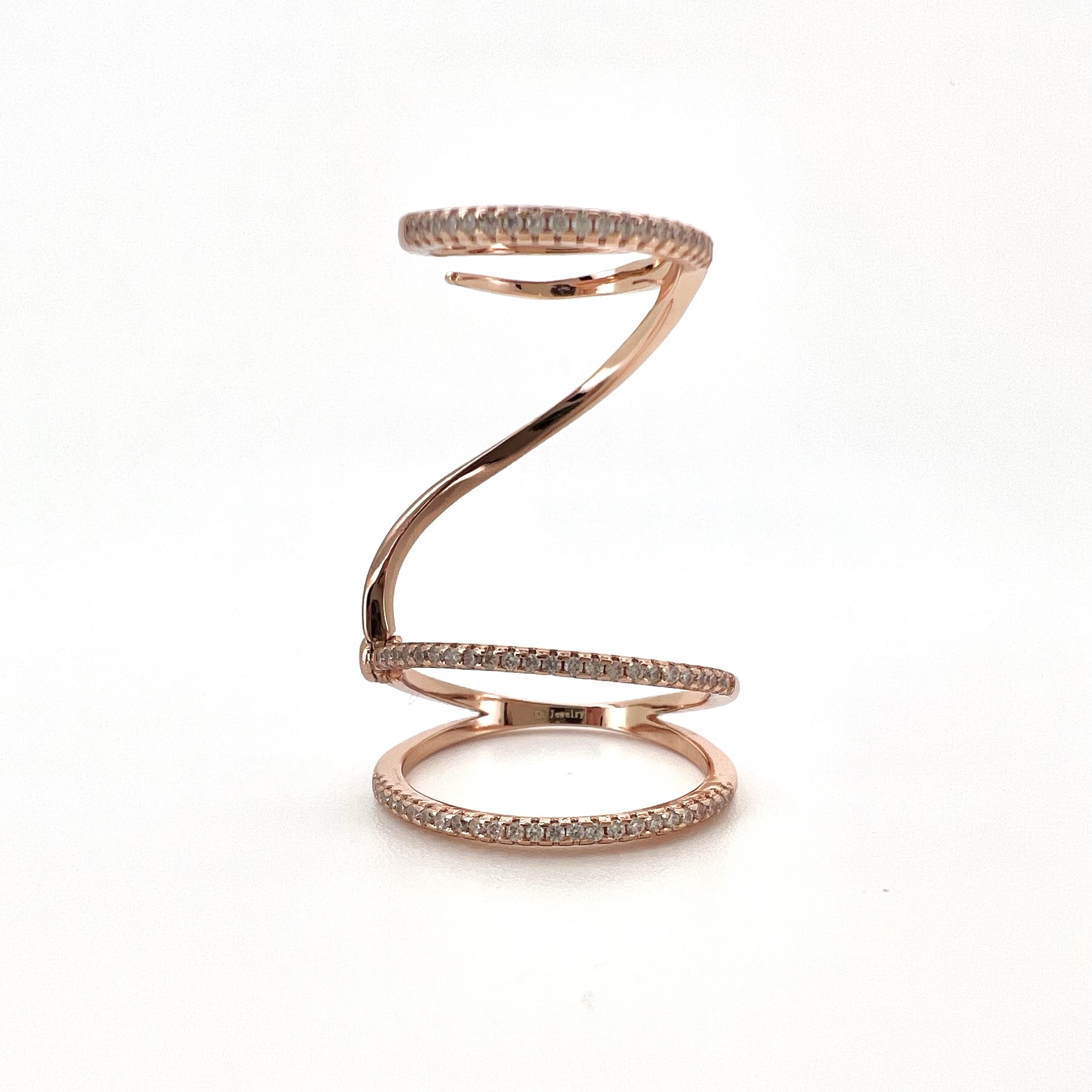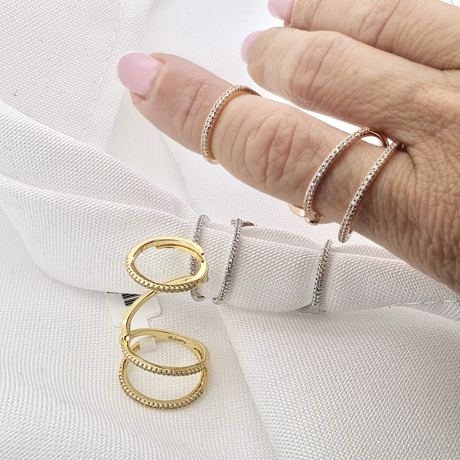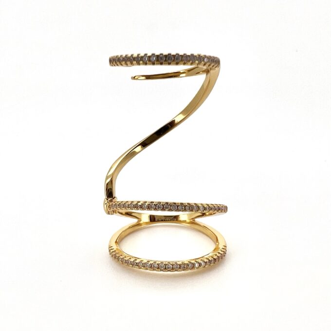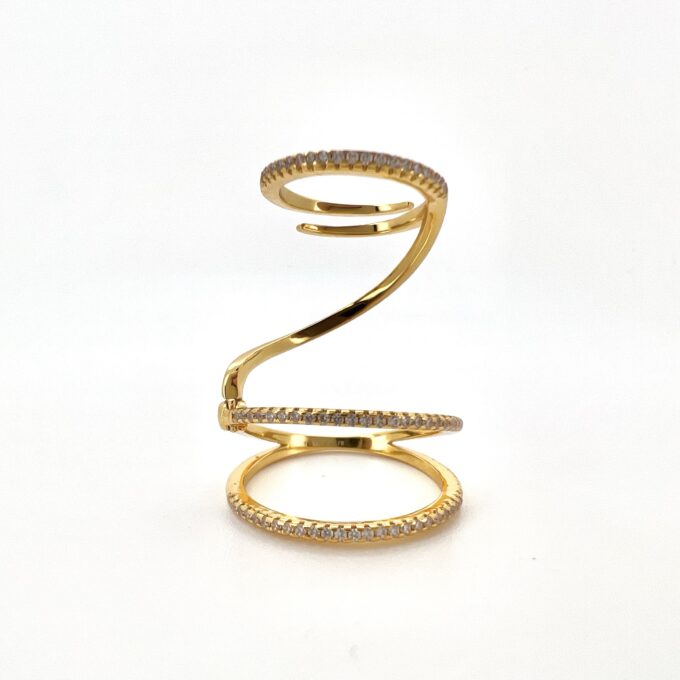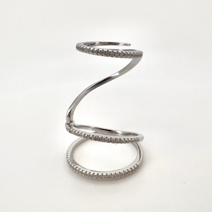 טבעת מחולקת לשלושה פסים משובצים אבני זרקון לאורך האצבע מרודים איכותי