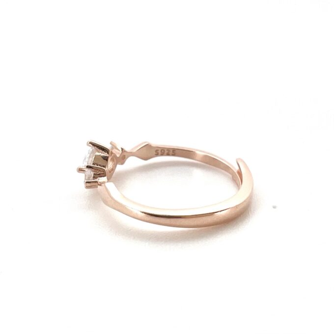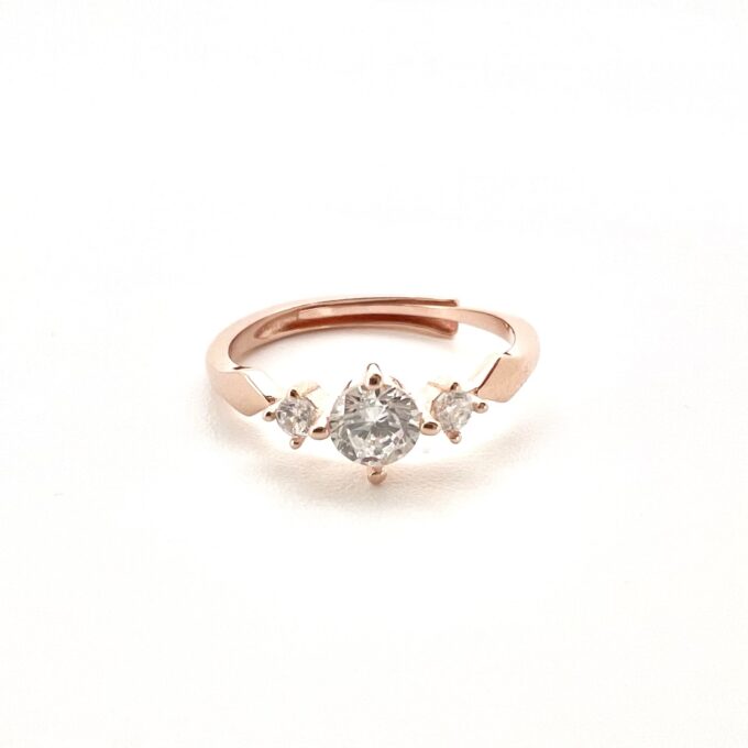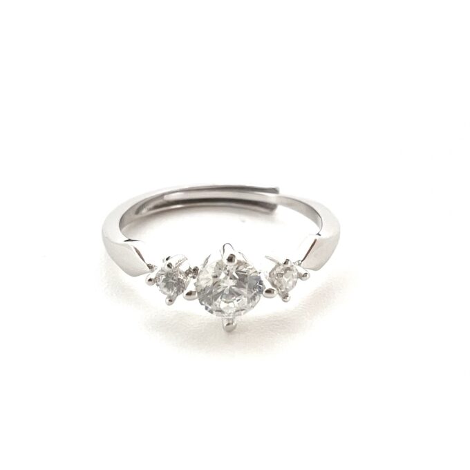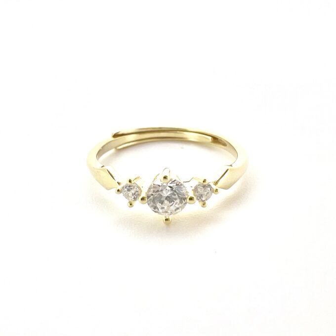 טבעת חלקה משובצת שלושה אבני זרקון בגדלים שונים