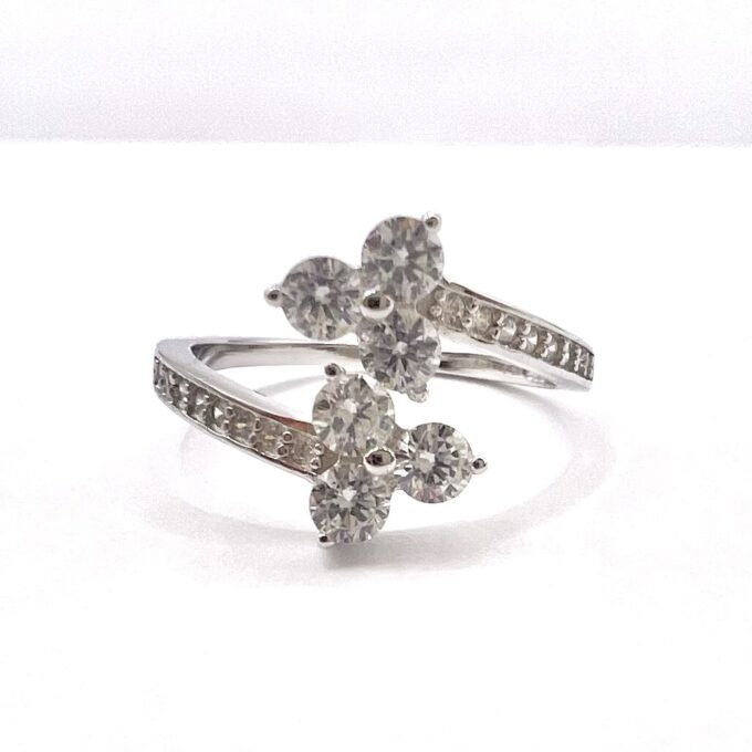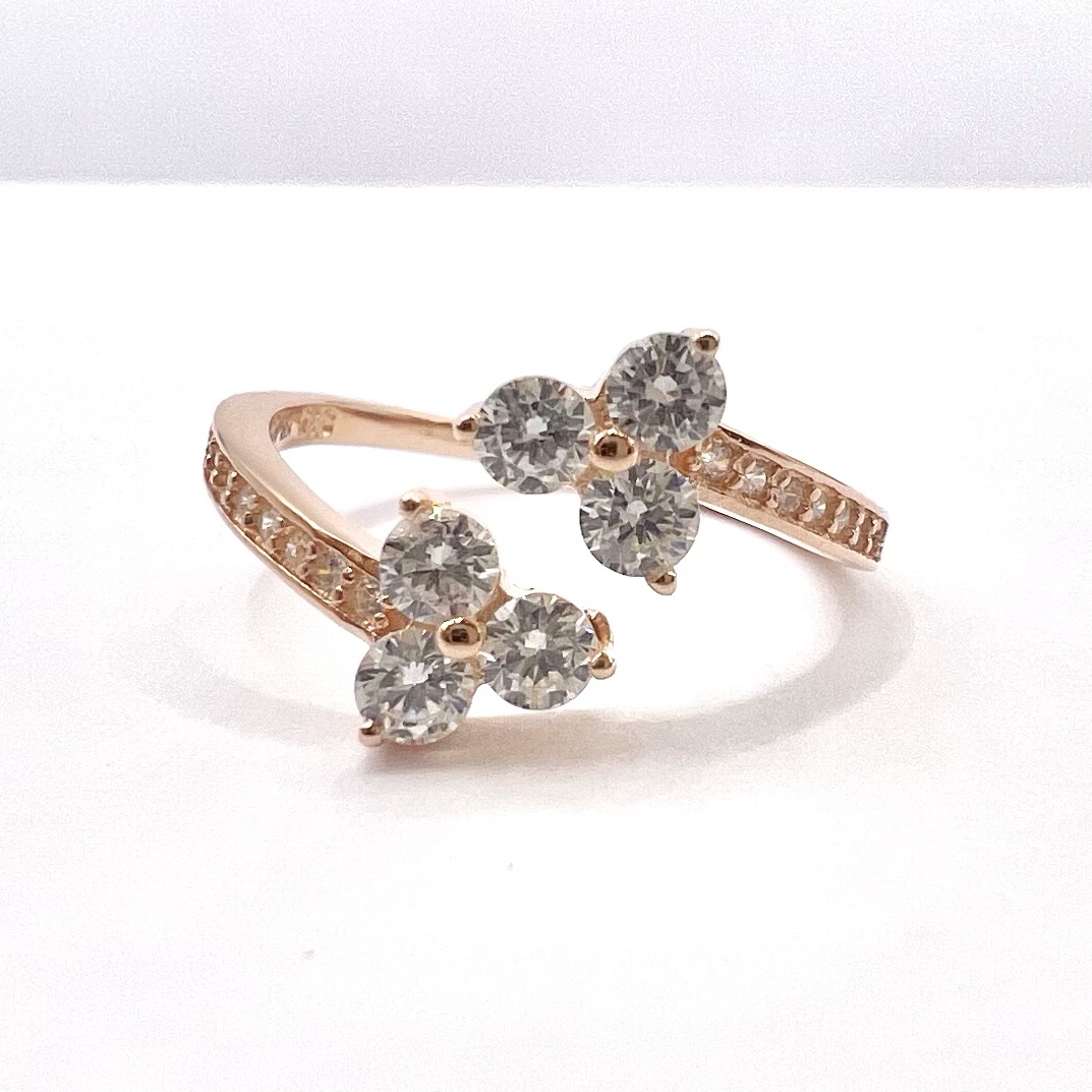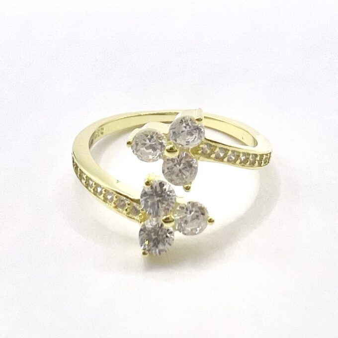 טבעת משובצת אבני זרקון נסגרת בצורה מקבילה עם שלשה אבני זרקון מכסף אמיתי 925