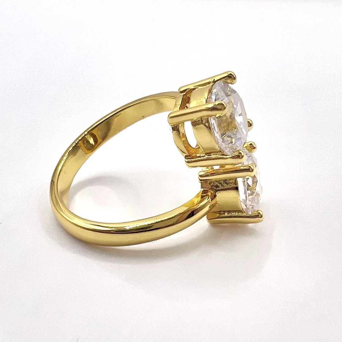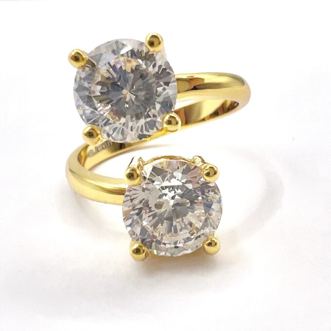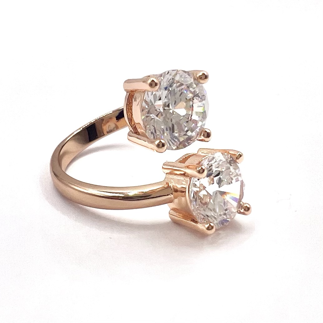 טבעת חלקה משובץ שתי אבני זרקון עגולות מרודיום איכותי