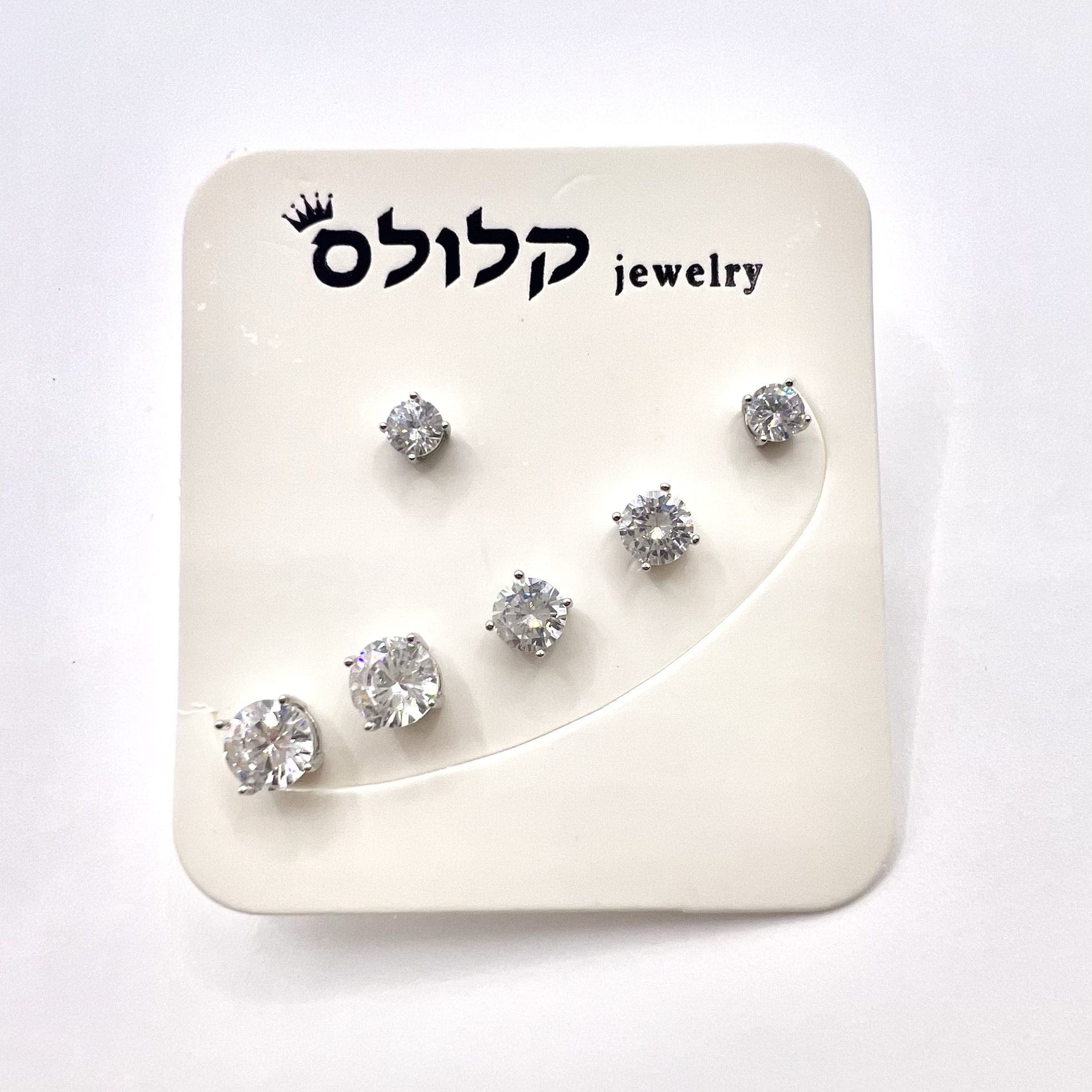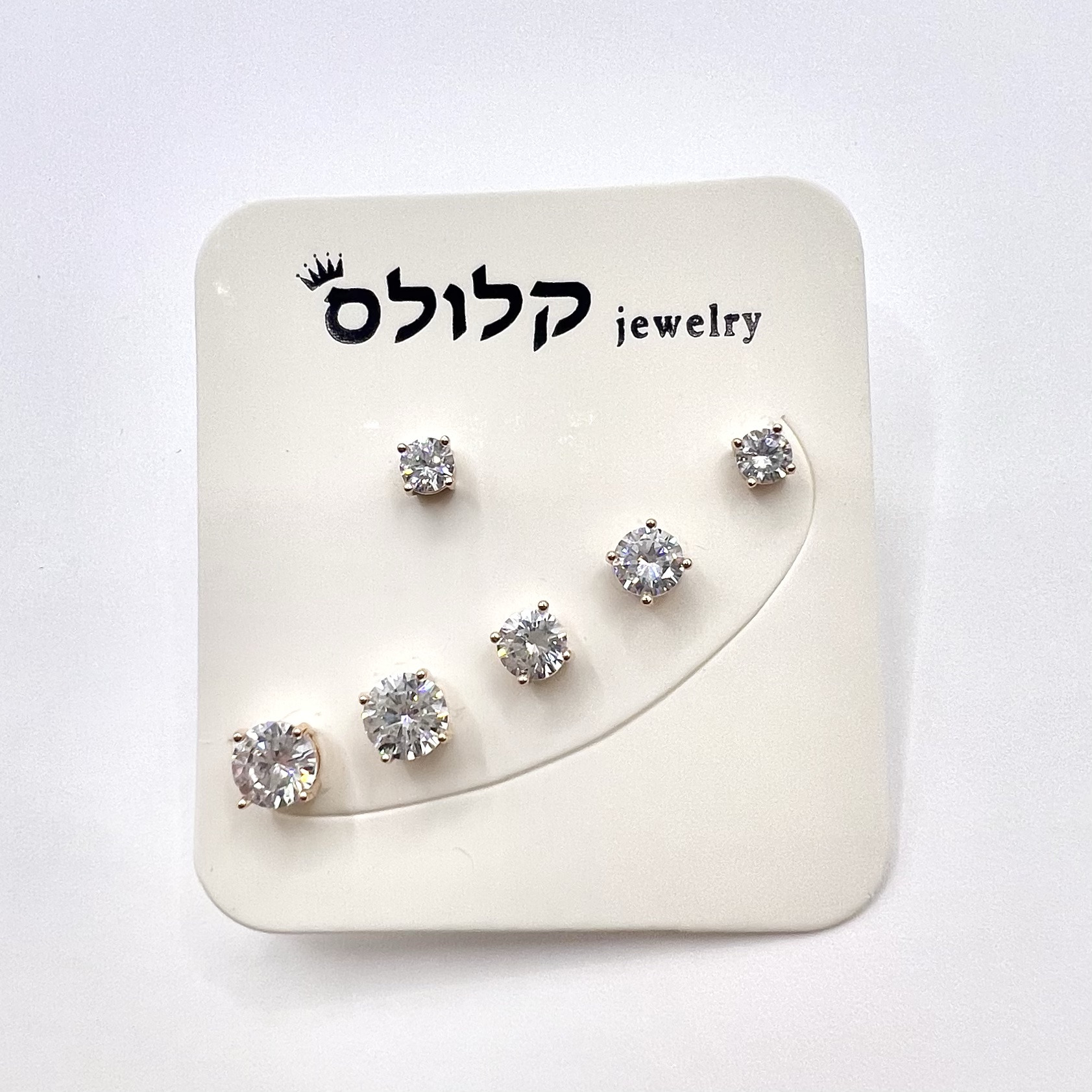 סט של שלושה זוגות עגילי זרקון בשלושה גדלים מרודיום איכותי
