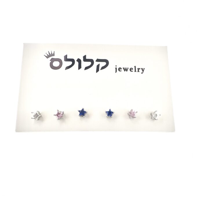 שלושה זוגות של עגילים צמודים בצורת כוכב בצבעים שונים מכסף אמיתי 925