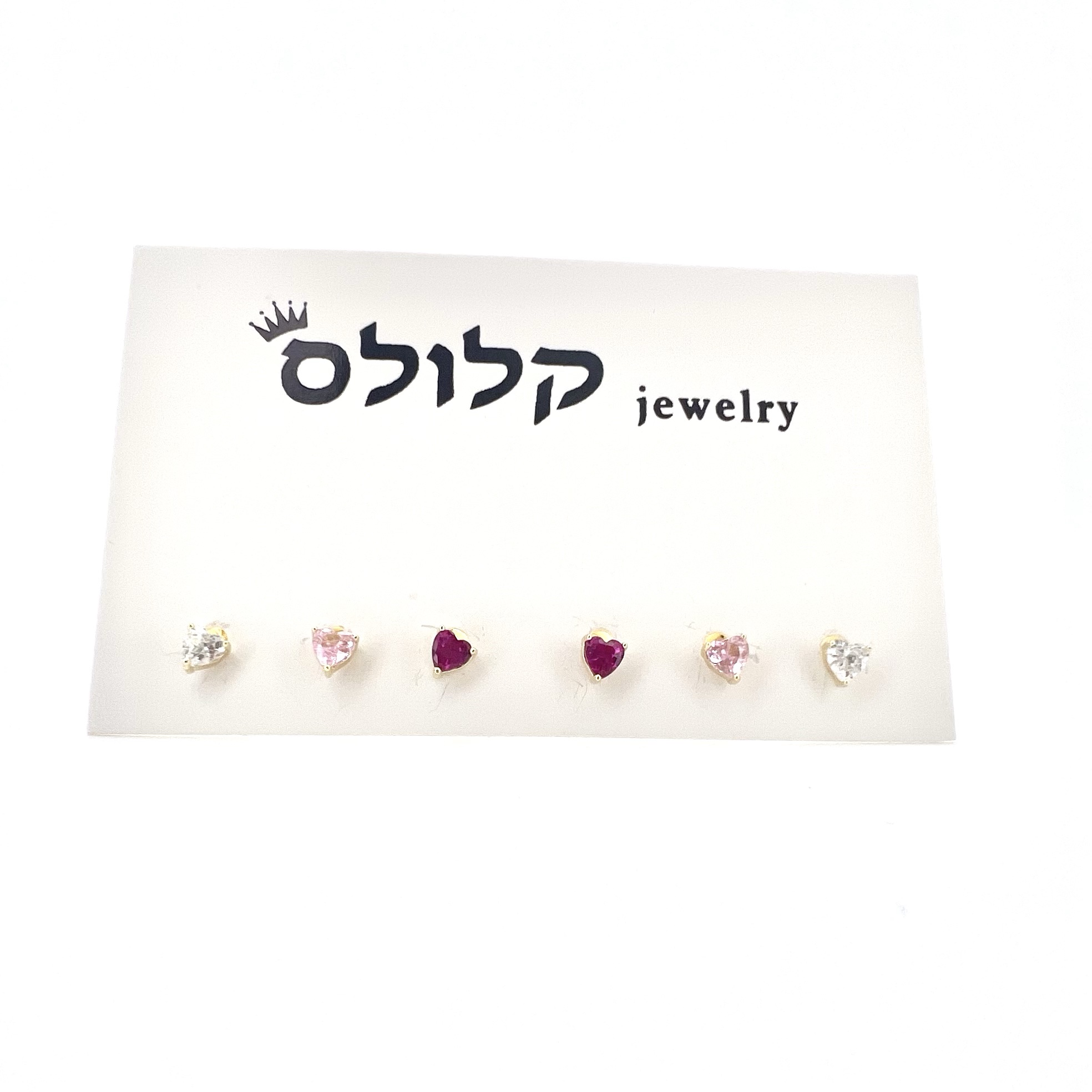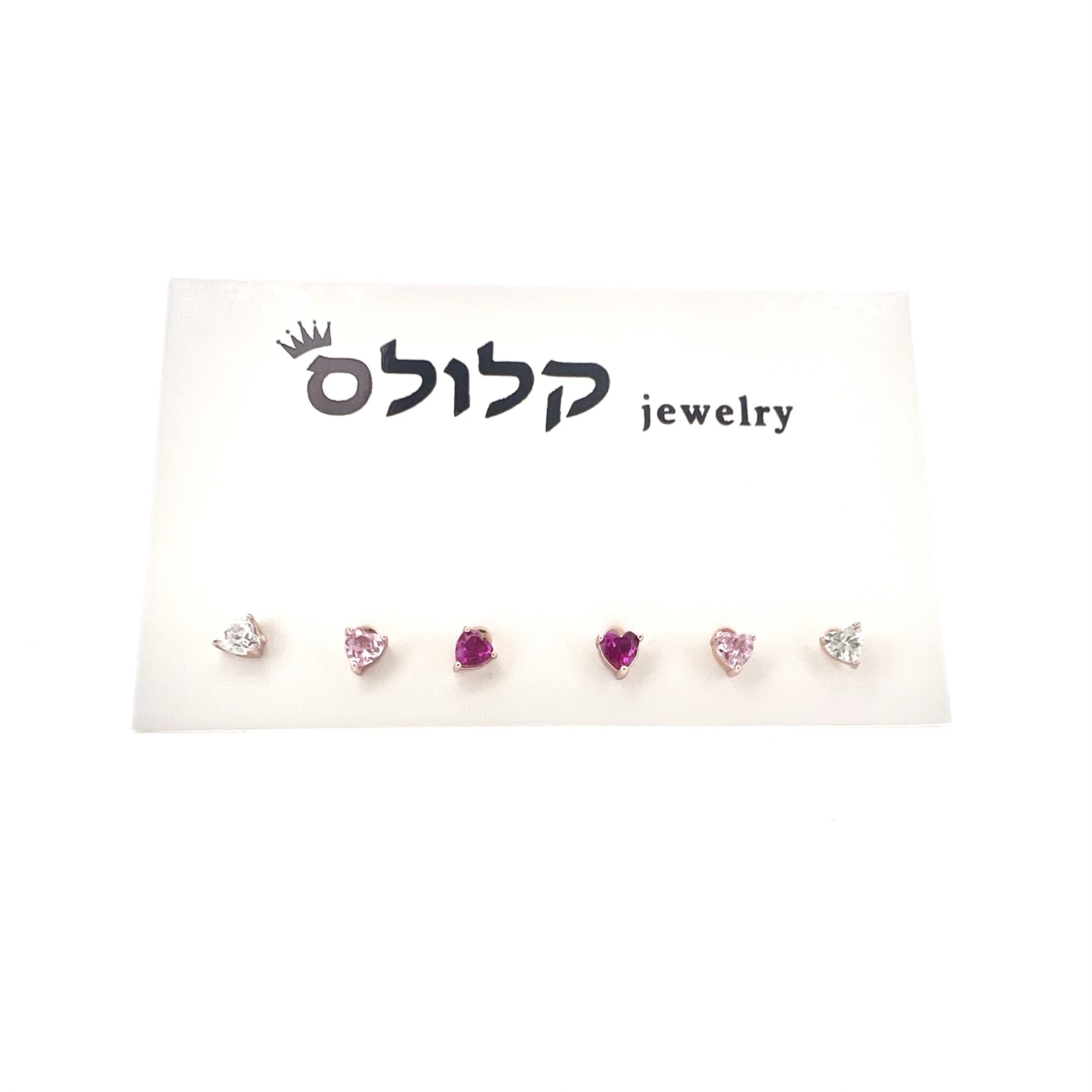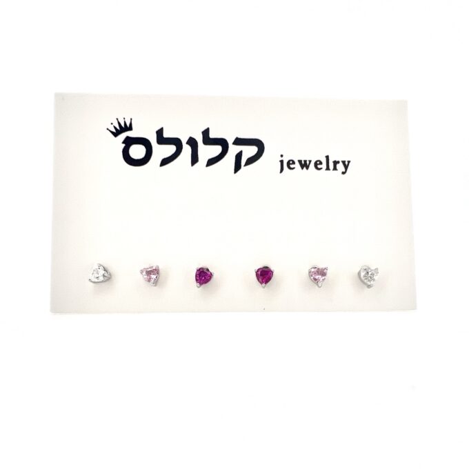 שלושה זוגות עגילים משובצים אבני זרקון בצורת לב במגוון צבעים מכסף אמיתי 925