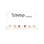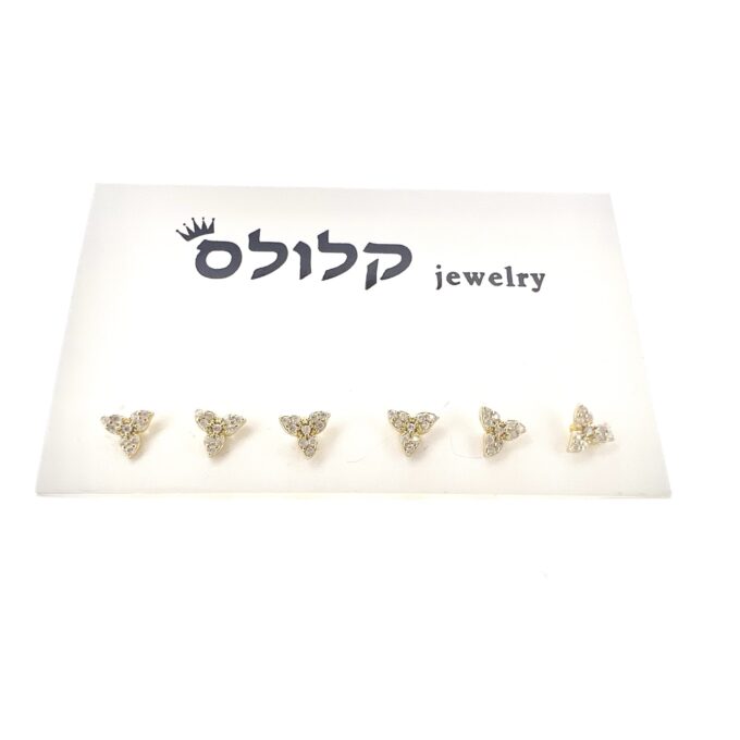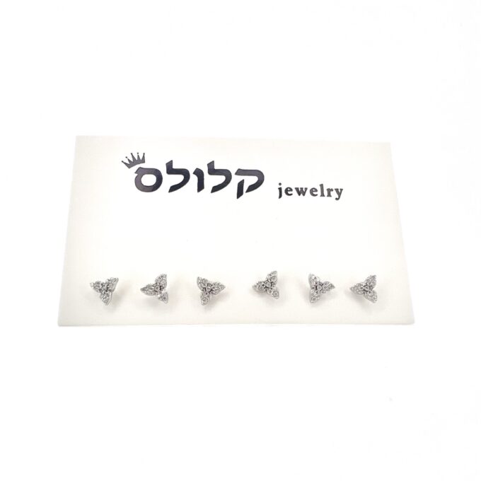 שלושה זוגות עגילים צמודים משובצים אבני זרקון מכסף אמיתי 925