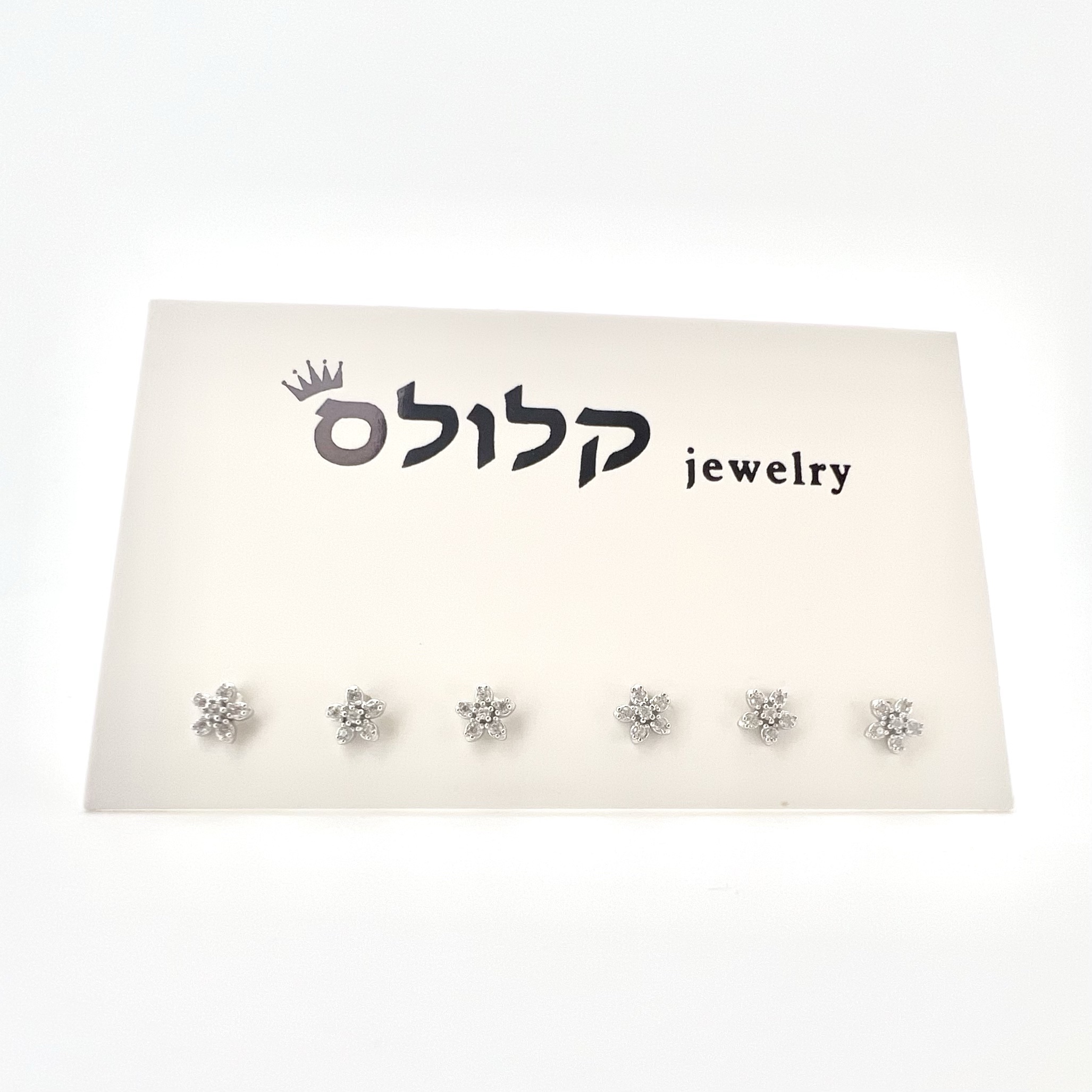 3 סטים של עגילים צמודים משובצים אבני זרקון בצורת פרח מכסף אמיתי 925
