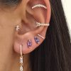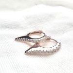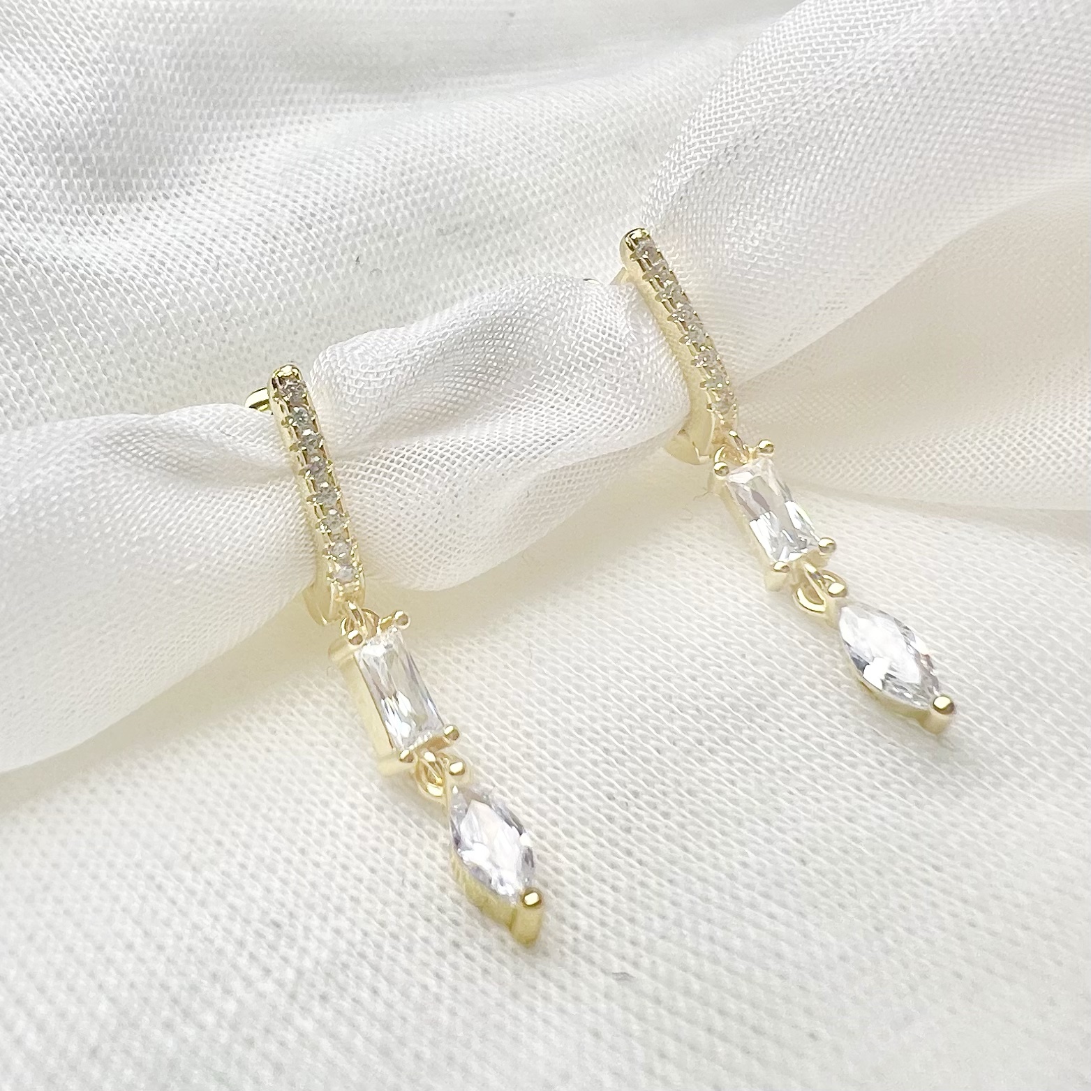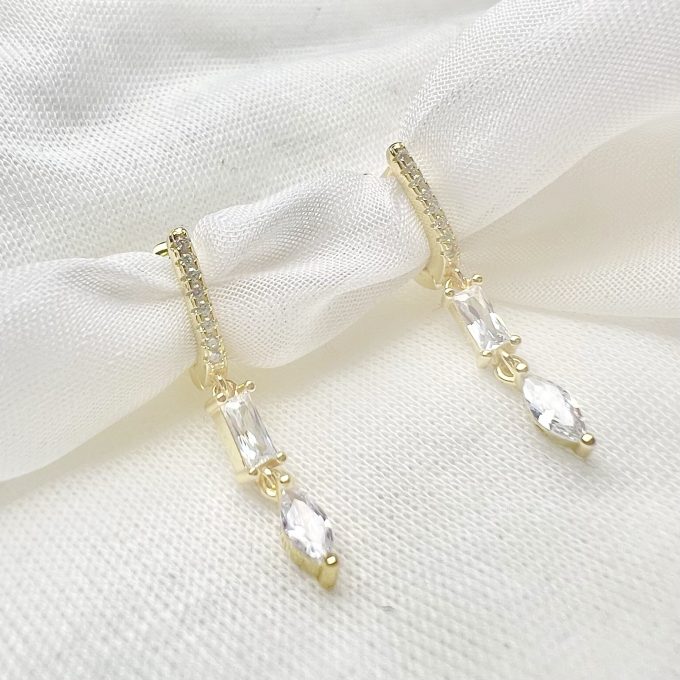 עגיל חישוק משובץ אבני זרקון עם אבן זרקון מרובעת נופלת שאליה מחובר עוד אבן בצורת טיפה מכסף אמיתי 925