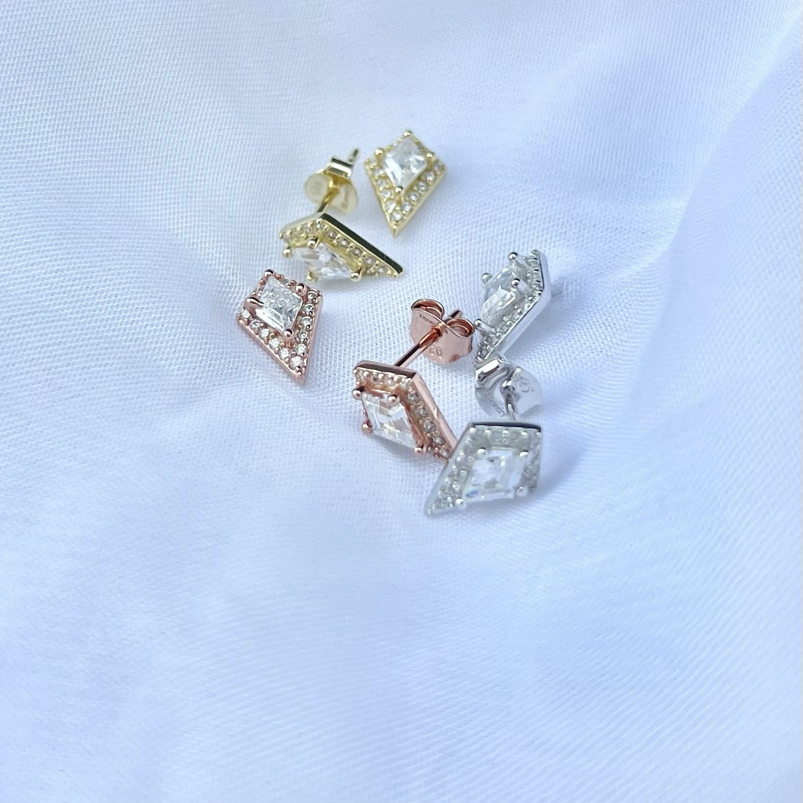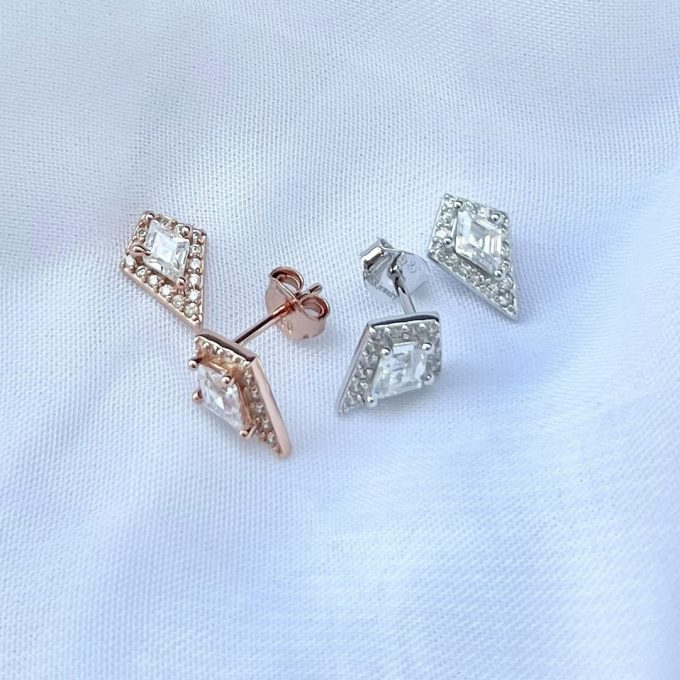 עגיל צמוד עם אבן זרקון בצורת יהלום משובץ מסביב מכסף אמיתי 925